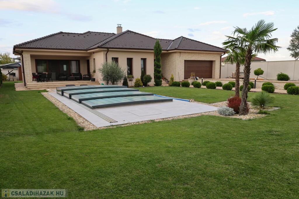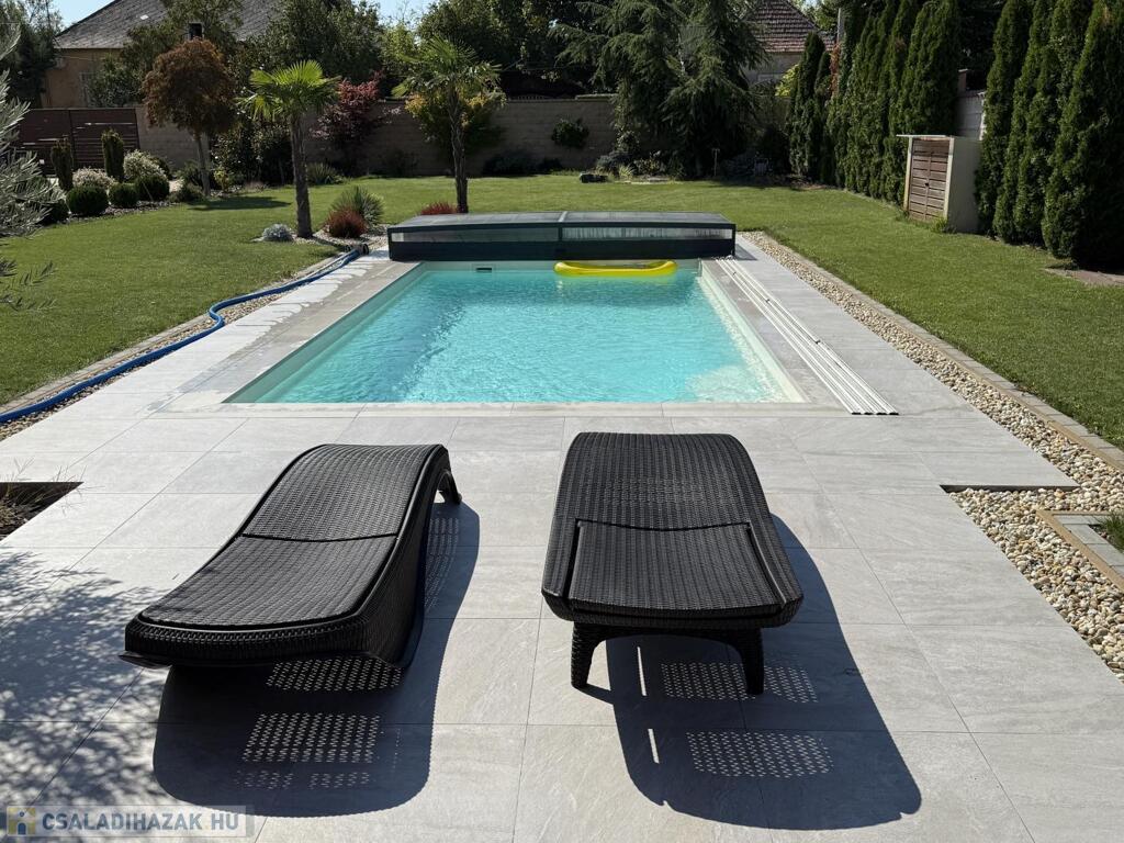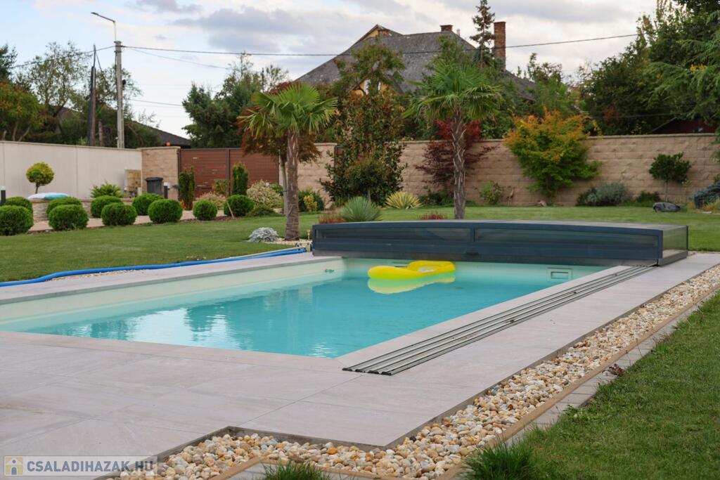 A telek minden négyzetmétere a prémium minőséget tükrözi: automata öntözőrendszerrel kiépített, kertész által megálmodott zöld környezet, gondosan válogatott növények, valamint a süllyesztett, fedett és fűtött medence teremtik meg a mindennapi nyaralás élményét. A kerthez kapcsolódó nagy, fedett terasz (18 m2) ideális helyszín meghitt családi vacsorákhoz vagy exkluzív baráti összejövetelekhez.