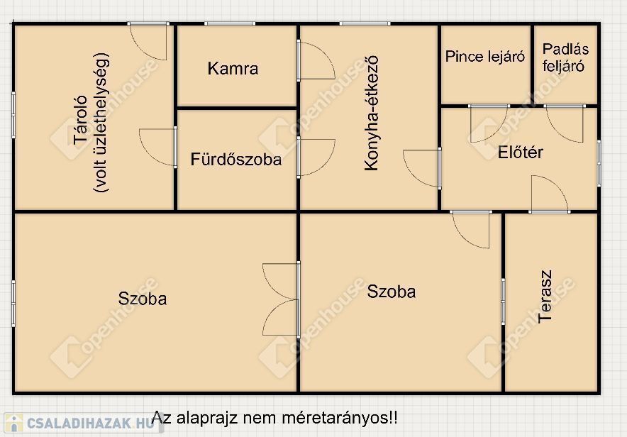 Tágas konyha-étkező, két nagy méretű szoba, fürdőszoba WC-vel, előtér, valamint egy külön bejárattal rendelkező helyiség, amely korábban üzletként funkcionált – így kiváló lehetőséget kínál akár vállalkozás indítására, akár egy önálló lakrész kialakítására.