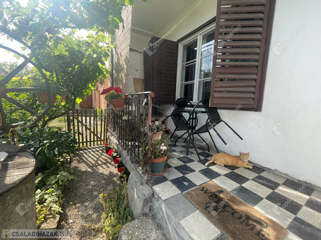 Kellemes fedett terasz, kertre néző bejárattal – tökéletes hely a reggeli kávéhoz vagy esti pihenéshez.