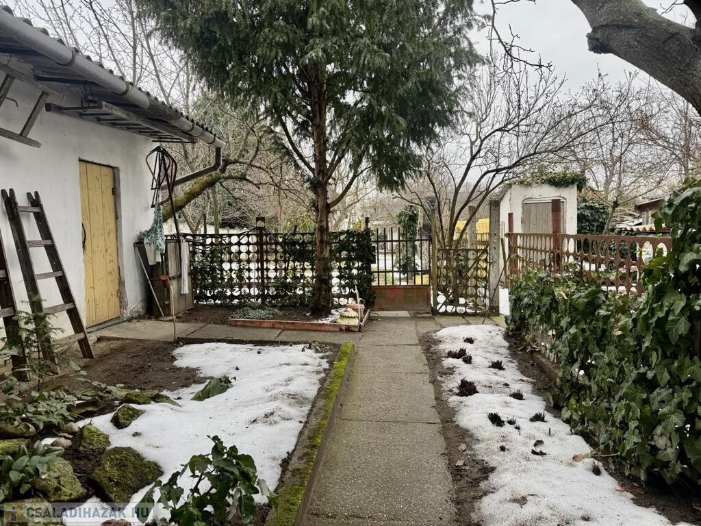 A telek első része betonozott, a középső részen használaton kívüli állattartó épületek állnak, míg a hátsó rész művelt konyhakert, amely kiváló lehetőséget kínál önellátásra vagy további hasznosításra.