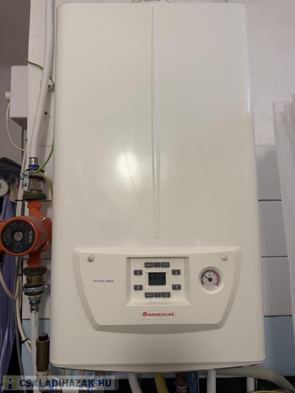 Fűtésrendszer: Korszerűsített! Fali kombi kondenzációs gázkazán (2021-ben lett cserélve) biztosítja a meleget (öntöttvas és lapradiátor hőleadókkal).