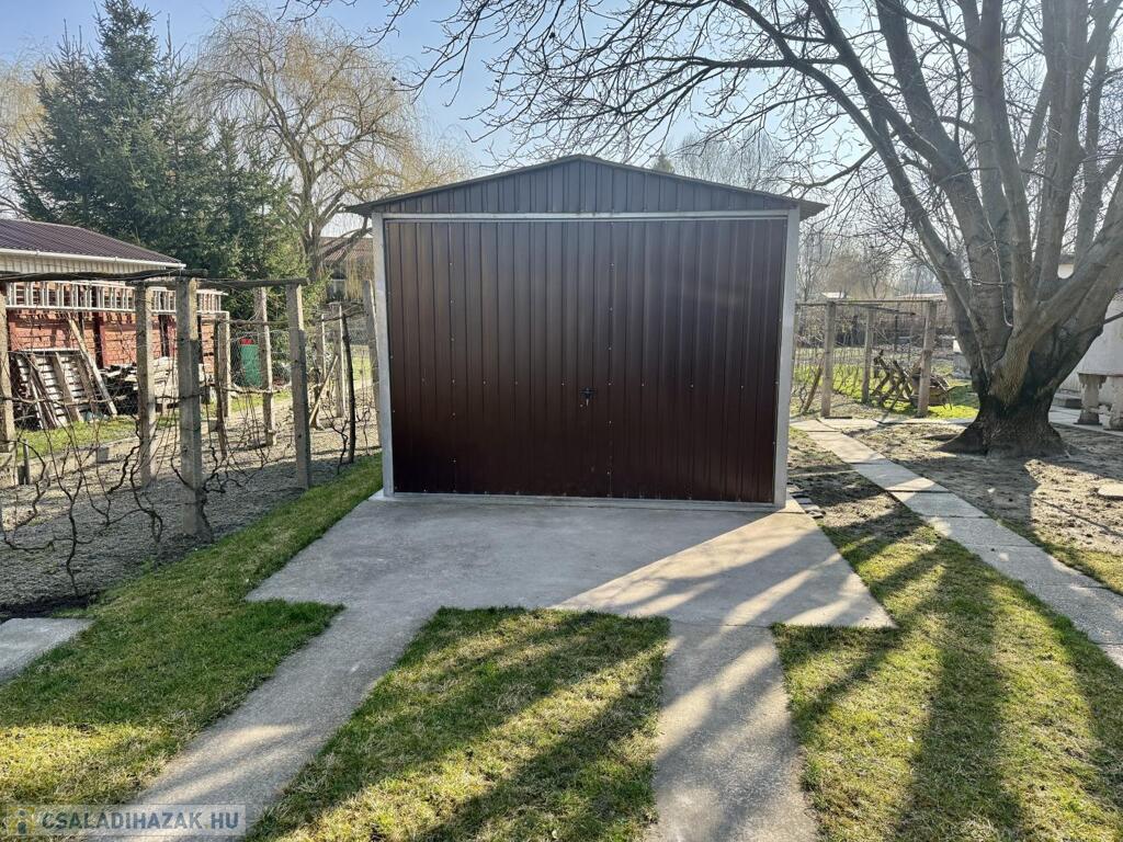 Dupla garázs: Egy könnyűszerkezetes (18 m2) és egy tégla építésű (17,5 m2) szerelőaknás garázs várja az autók és a barkácsolás szerelmeseit.