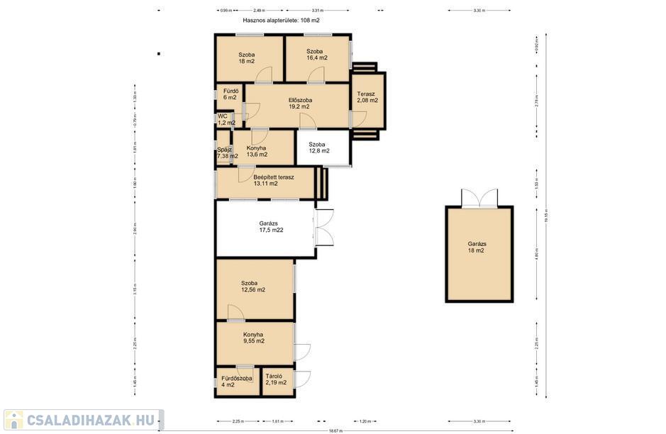A 108 m2-es főépület logikus, kényelmes elosztású: