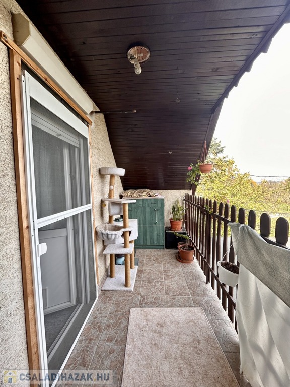 - helyiségek: előszoba 6,01 nm, közlekedő/étkező 10,35 nm, konyha 4,11 nm, hálószoba 17,90 nm, fürdőszoba + wc 4,75 nm, emeleti szinten pedig egy hálószoba 13,69 nm erkély 6,86 nm kapcsolattal
