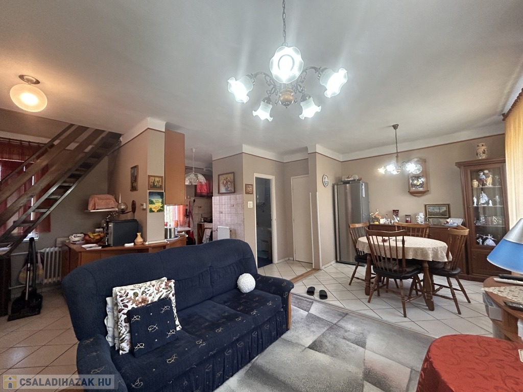 Helyiségek: előszoba, konyha, nappali + étkező, külön wc, fürdőszoba, emeleten 2 külön szoba, fürdő + wc, előtér, erkély