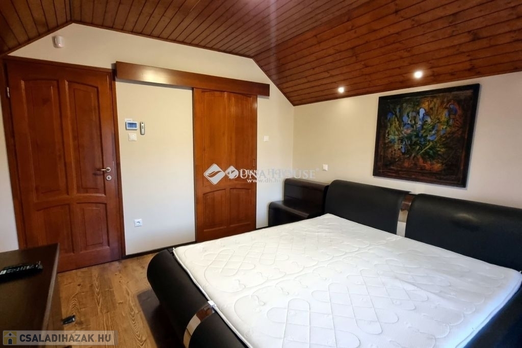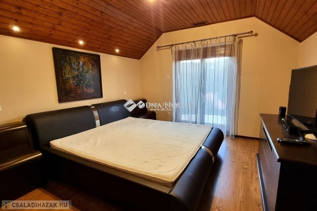 Ön is álmodozott már róla, hogy csendes, erdős környezetben, vízparton töltse a mindennapjait?Ez a ház tényleg a mesékből lépett ki! Komló-Sikonda tópartjánál kínálom megvételre ezt a leírhatatlanul hangulatos, káprázatosan szép környéken lévő családi házat és a hozzá tartozó kisebb vendégházat.A házat 2008-ban építették, majd 2018-ban teljes felújításon esett át. Az ablakok elektromos redőnnyel ellátottak, a helyiségekben egyedi hőfok szabályozó rendszer van és klímával felszereltek. Az amúgy is napfényes házban minden helyiség led világítással ellátott, amik külön bekötésüknek köszönhetően csodás hangulatvilágítást varázsolnak. Az ingatlanban riasztórendszer van kiépítve, és 3 széf is található. A kényelem érdekében a porszívó beépített, így könnyen használható bármelyik szobában cipekedés nélkül.A 3,5 szintes otthon a kifogástalan, beépített bútorzattal, extra és modern felszereltségével minden szükségletet kielégít: Egy szint a barátoknak: A legalsó szinten egy garázson át érkezünk a házba, ahonnan a hangulatos közösségi térbe jutunk, gyönyörű borospincével, és egy külön fürdőszobás wellness helyiséggel (szauna, jacuzzi) Két szint a családnak: A földszinten (ami akár a garázsból, akár az udvarból is megközelíthető) a hatalmas, egylégterű étkező-konyha-nappali fogad minket. A konyha gépesített, minden háztartási cikkel felszerelt. Ezen a szinten még egy dolgozószoba és egy fürdőszoba vár ránk. Egy emelettel feljebb találjuk a 3 hálószobát, valamint a különálló fürdőt és illemhelyiséget. A szobák mindegyike óriási beépített szekrényekkel vagy gardróbbal ellátott, így bőven jut hely a ruháknak is. A tó felé néző szobának erkélyéről pedig csodás látványban lehet részünk nap, mint nap.Egy fél szint az elvonulni vágyóknak: Az emeletről egy csigalépcsőn át egy kicsike toronyszobába érkezünk, ami mind a 4 falán ablakokkal van ellátva, hogy a tó és az erdő minden napszakának minden pillanatával ámulatba ejtsen minket. A helyiség kiválóan alkalmas szivarszobának is a mennyezetbe beépített szagelszívóknak köszönhetően.Egy udvar a természetbe vágyóknak: A ház bejáratánál már rögtön egy nagy nyitott terasz vár ránk, azonban ha hátramegyünk a kertbe, akkor egy erdő által körülölelt, fedett, hatalmas teraszra érkezünk, kemencével, grillel. A 600 nm-es udvaron belül egy kapun át a vendégházhoz jutunk, aminek intim, hangulatos kertjében a pavilonban ülve várhatjuk, hogy a legfinomabb falatok a bográcsban elkészüljenek.Egy ház a vendégek számára: A kis házban egy konyha, egy fürdőszoba és 2 szoba található, amikből egy fedett teraszra lehet kiülni. A ház alsó szintjében is van egy garázs tárolókkal, valamint egy fedett autóbeálló.A 2 ingatlan külön is megközelíthető, az utcafrontról mindkettőbe 1-1 elektromos kapun át jutunk. A házak előtt még bőven van hely még több autó számára is. A házakban a berendezés marad, így a képeken látható teljes egészében vásárolható meg. Kifejezetten ajánlom családok számára, akik egy tökéletes otthonra vágynak a várostól elvonultan, de mégis közel. A vízpartot és a természetet kedvelőknek is egy kihagyhatatlan lehetőség, hiszen a tó kb. 1,5 perc sétára található a háztól. Az ingatlan az adottságainak köszönhetően kiváló befektetés, a turisták és kirándulók kedvenc vendégháza lenne a környéken! És még berendeznie sem kell! Keressen bátran, nézzük meg együtt új otthonát! Az ingatlan cég tulajdonában áll, az ár 158.000.000 Ft + ÁFA, azaz bruttó 200.000.000 Ft!Ön is álmodozott már róla, hogy csendes, erdős környezetben, vízparton töltse a mindennapjait?Ez a ház tényleg a mesékből lépett ki! Komló-Sikonda tópartjánál kínálom megvételre ezt a leírhatatlanul hangulatos, káprázatosan szép környéken lévő családi házat és a hozzá tartozó kisebb vendégházat.A házat 2008-ban építették, majd 2018-ban teljes felújításon esett át. Az ablakok elektromos redőnnyel ellátottak, a helyiségekben egyedi hőfok szabályozó rendszer van és klímával felszereltek. Az amúgy is napfényes házban minden helyiség led világítással ellátott, amik külön bekötésüknek köszönhetően csodás hangulatvilágítást varázsolnak. Az ingatlanban riasztórendszer van kiépítve, és 3 széf is található. A kényelem érdekében a porszívó beépített, így könnyen használható bármelyik szobában cipekedés nélkül.A 3,5 szintes otthon a kifogástalan, beépített bútorzattal, extra és modern felszereltségével minden szükségletet kielégít: Egy szint a barátoknak: A legalsó szinten egy garázson át érkezünk a házba, ahonnan a hangulatos közösségi térbe jutunk, gyönyörű borospincével, és egy külön fürdőszobás wellness helyiséggel (szauna, jacuzzi) Két szint a családnak: A földszinten (ami akár a garázsból, akár az udvarból is megközelíthető) a hatalmas, egylégterű étkező-konyha-nappali fogad minket. A konyha gépesített, minden háztartási cikkel felszerelt. Ezen a szinten még egy dolgozószoba és egy fürdőszoba vár ránk. Egy emelettel feljebb találjuk a 3 hálószobát, valamint a különálló fürdőt és illemhelyiséget. A szobák mindegyike óriási beépített szekrényekkel vagy gardróbbal ellátott, így bőven jut hely a ruháknak is. A tó felé néző szobának erkélyéről pedig csodás látványban lehet részünk nap, mint nap.Egy fél szint az elvonulni vágyóknak: Az emeletről egy csigalépcsőn át egy kicsike toronyszobába érkezünk, ami mind a 4 falán ablakokkal van ellátva, hogy a tó és az erdő minden napszakának minden pillanatával ámulatba ejtsen minket. A helyiség kiválóan alkalmas szivarszobának is a