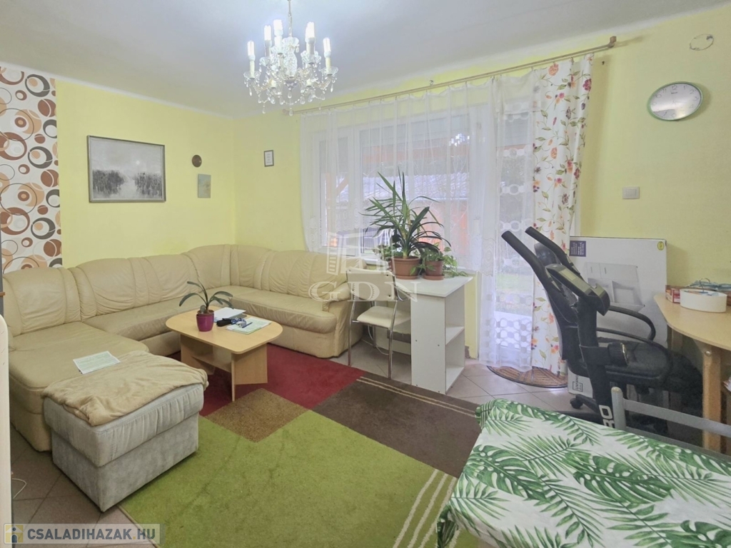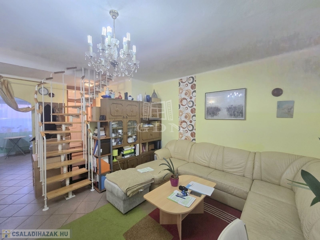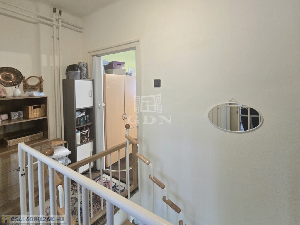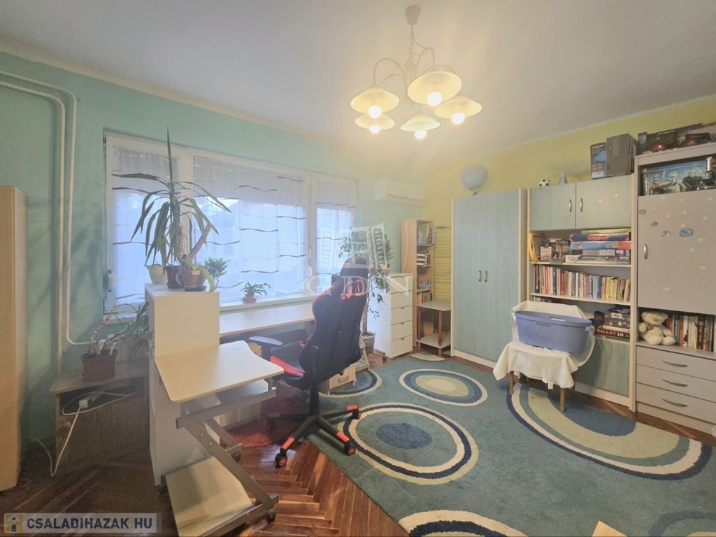 Az ingatlan 3 szobával rendelkezik, praktikus elrendezésének köszönhetően kényelmes életteret biztosít akár többgyermekes család számára is. A földszinti nagyszoba gyakorlatilag nappaliként funkcionál, az emeleti 2 szoba kiváló nyugalmat biztosít az éjszakai pihenésre. A lakás részben felújított, műszaki állapota kiváló:
