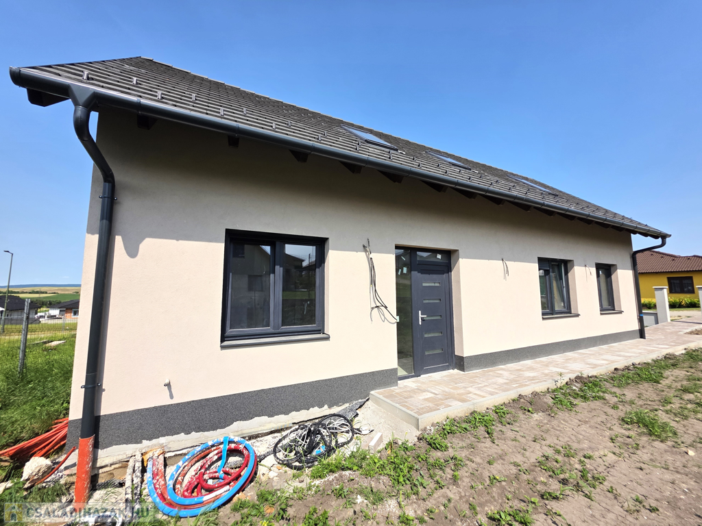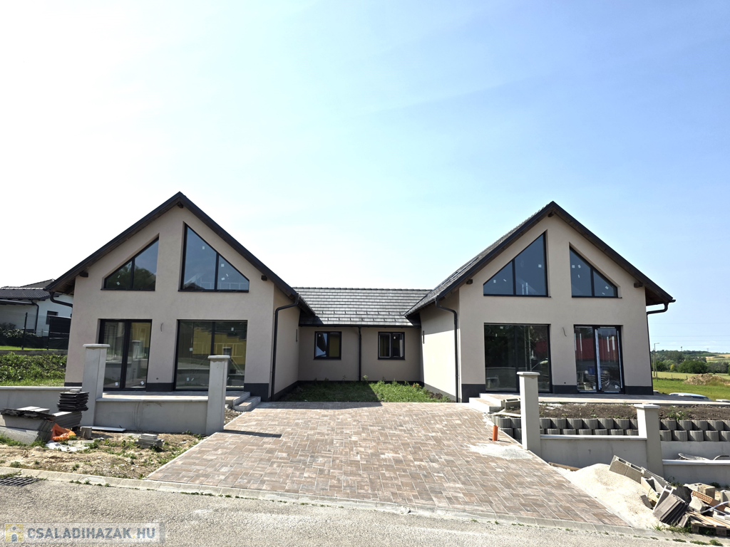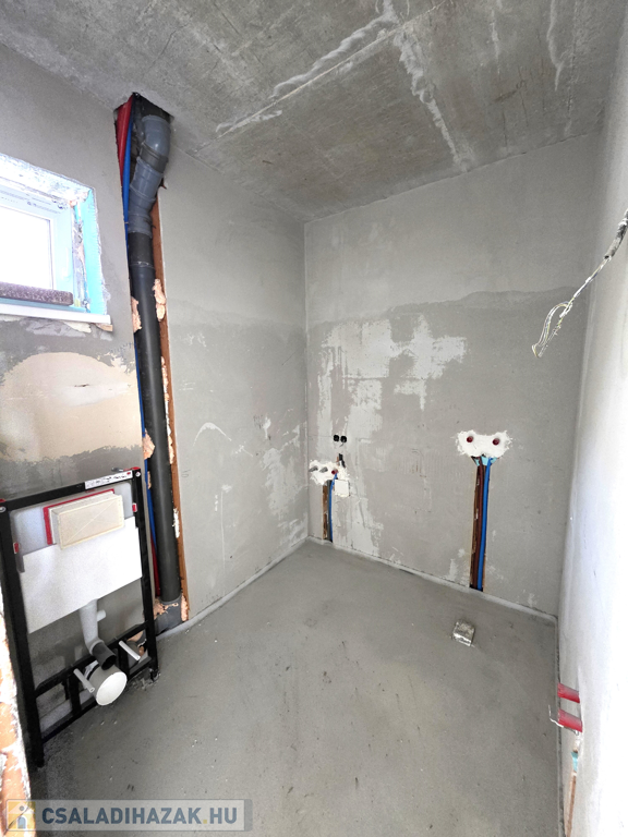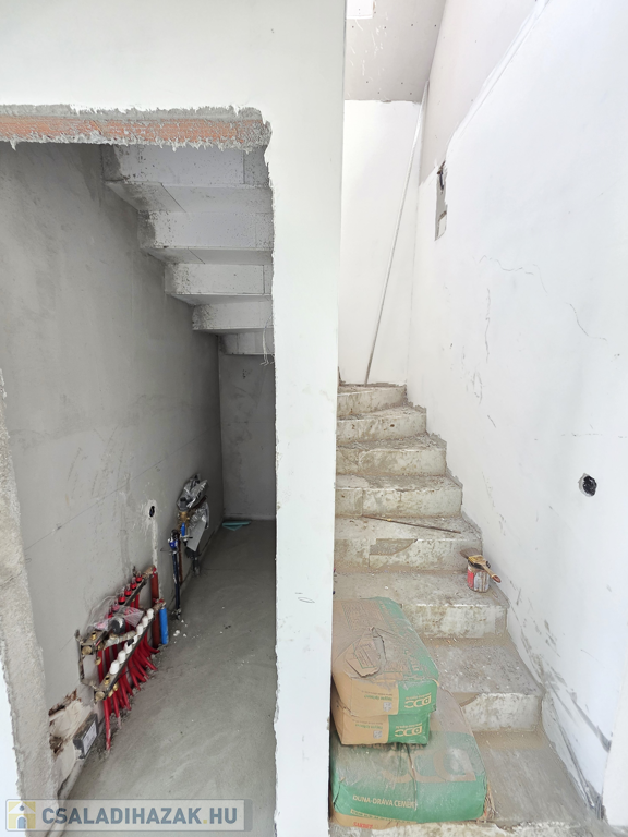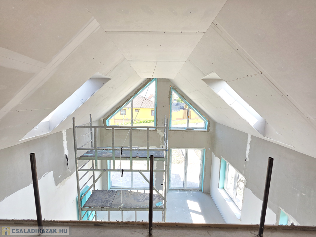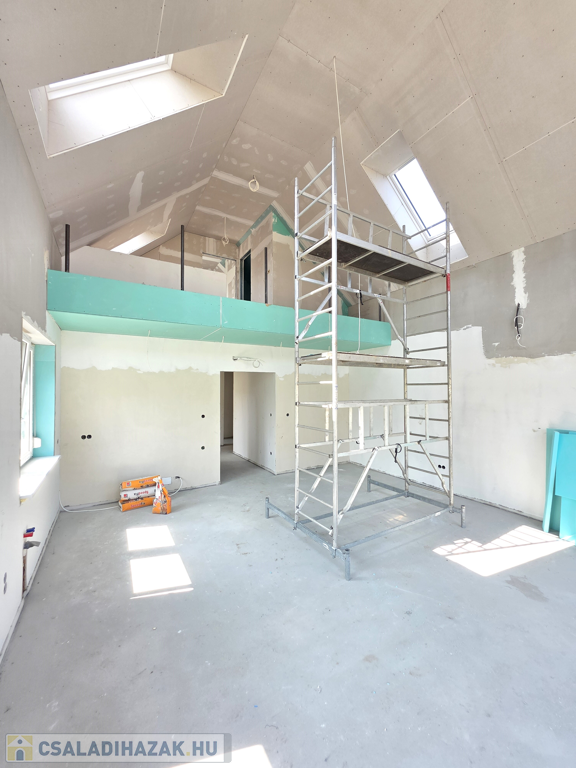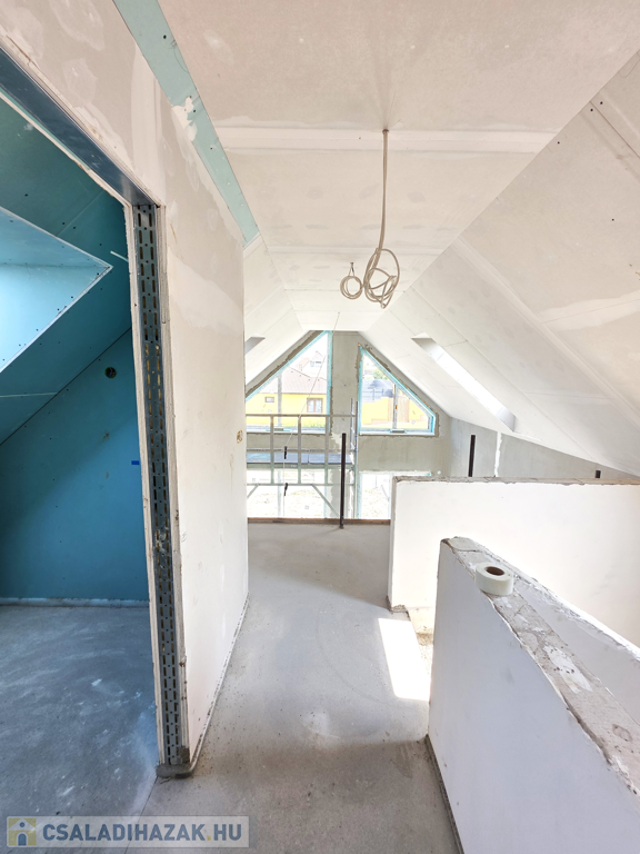 Az emeleten pedig egy nagyszoba és fürdőszoba található. A ház minden helyisége világos, napfényes. Az ingatlan falazata 44-es xtherm rapid okostégla hőszigetelő vakolattal. A nyílászárók 3 rétegű ablakok, elektromos redőnnyel és szúnyoghálóval ellátva.
