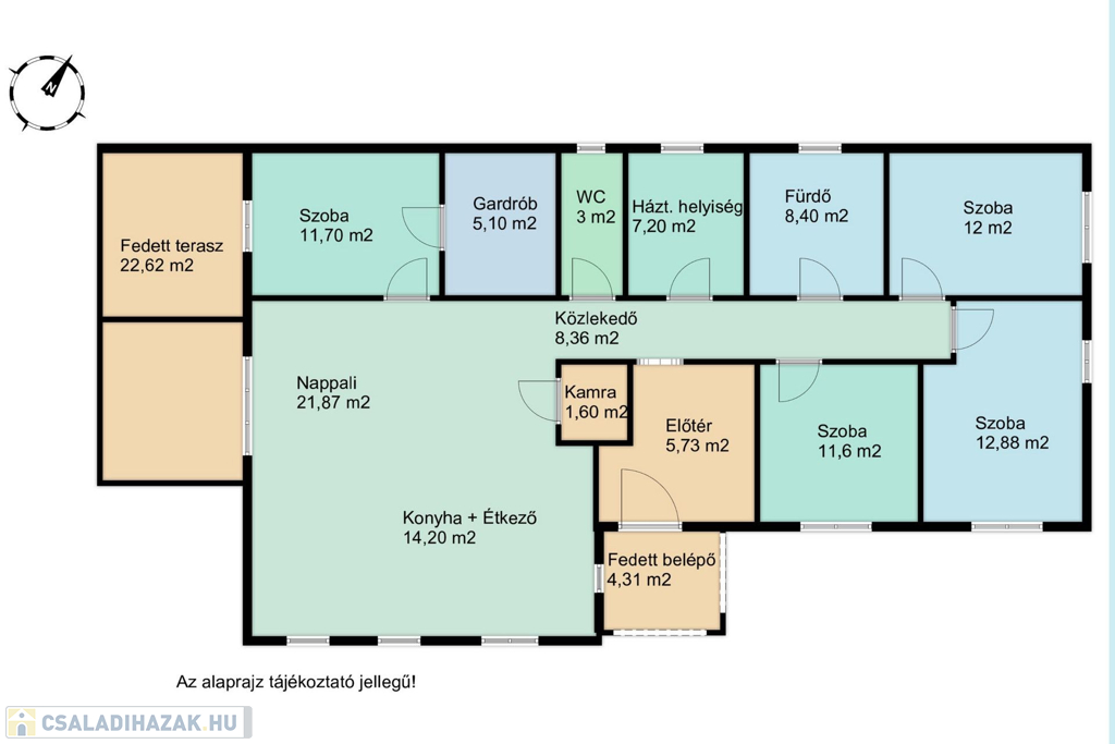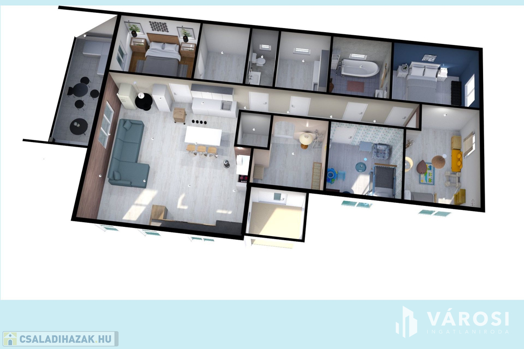 - 123 m2 alapterületen, tágas előszoba, közlekedő, AMERIKAI KONYHÁS NAPPALI, kamra, + 4 HÁLÓSZOBA, gardrób,