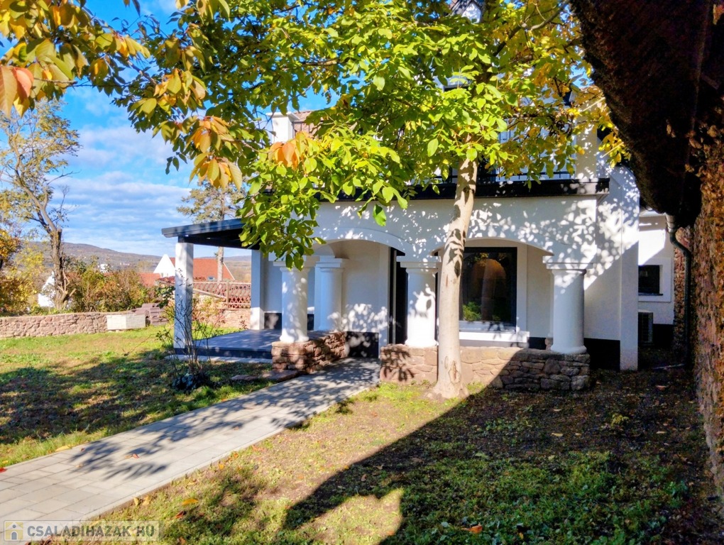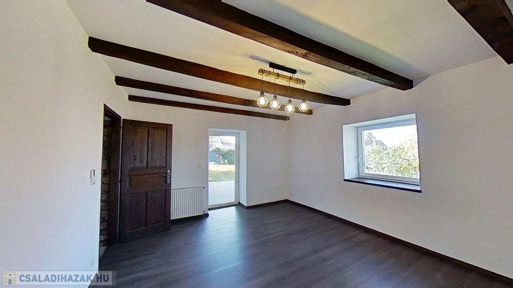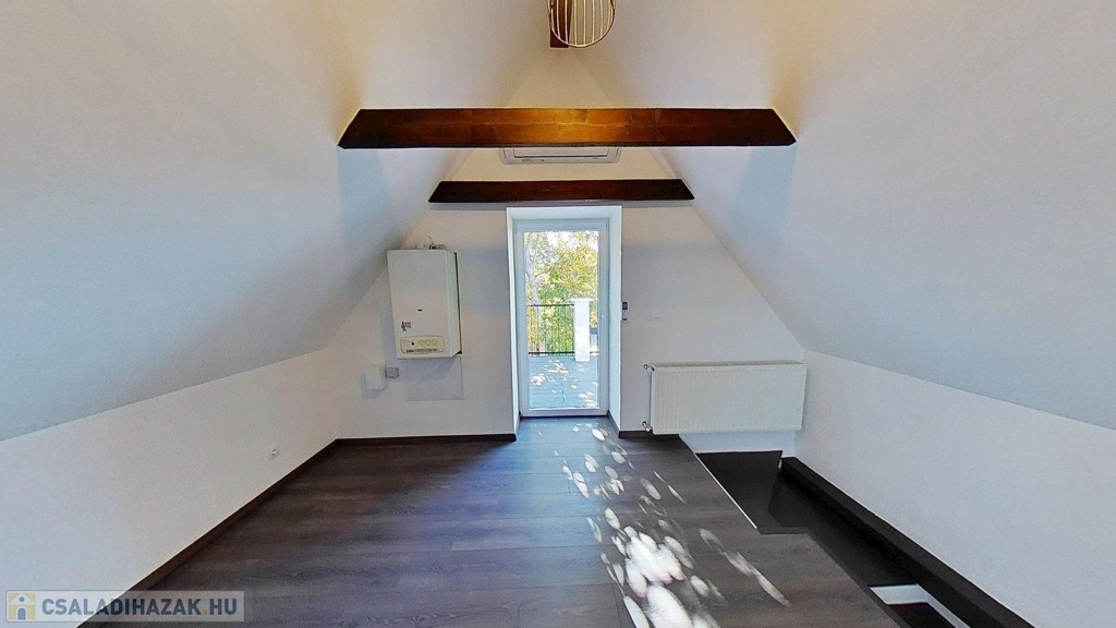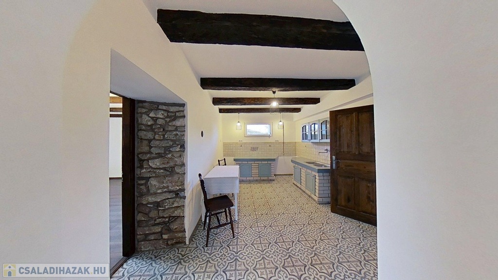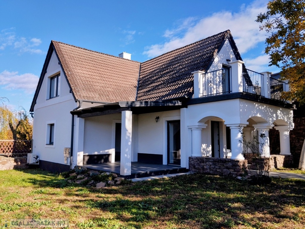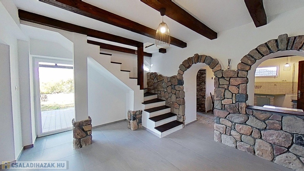 Eladó egyedi megjelenésű, földszint plusz tetőtér-beépítéses, 100 m2 belső hasznos területű, 3 szobás, duplakomfortos, felújított családi ház a Balaton északi partján, Kővágóörsön, elvehetetlen panorámával a Káli-medencére, a Kis-Hegyestűre és a kővágóörsi kőtengerre.