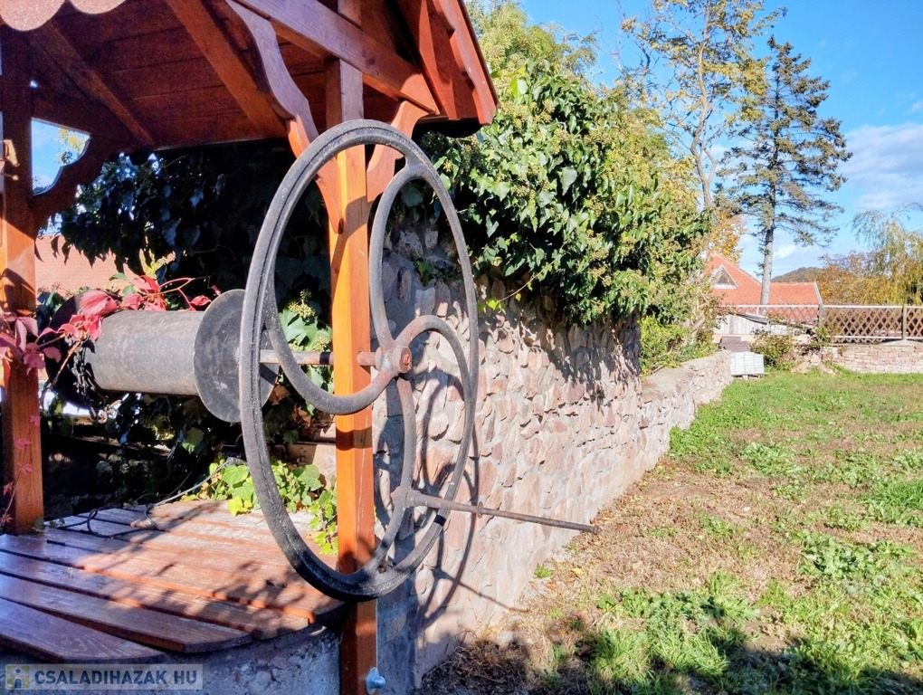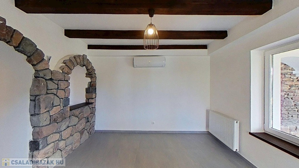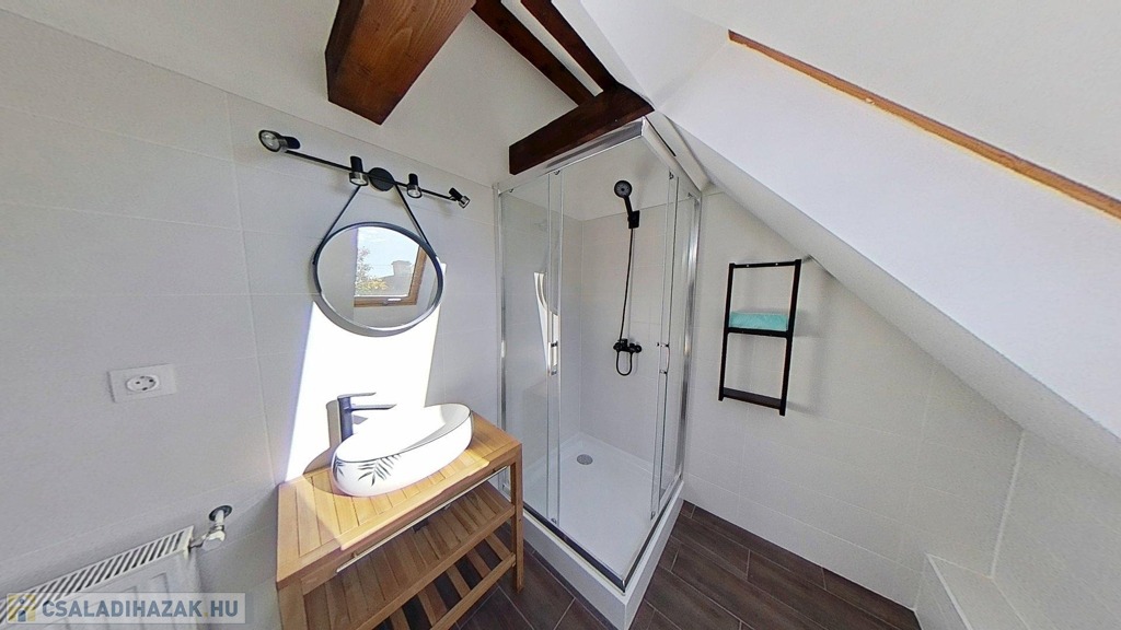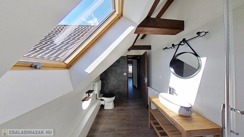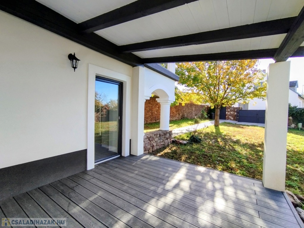 Eladó egyedi megjelenésű, földszint plusz tetőtér-beépítéses, 100 m2 belső hasznos területű, 3 szobás, duplakomfortos, felújított családi ház a Balaton északi partján, Kővágóörsön, elvehetetlen panorámával a Káli-medencére, a Kis-Hegyestűre és a kővágóörsi kőtengerre.