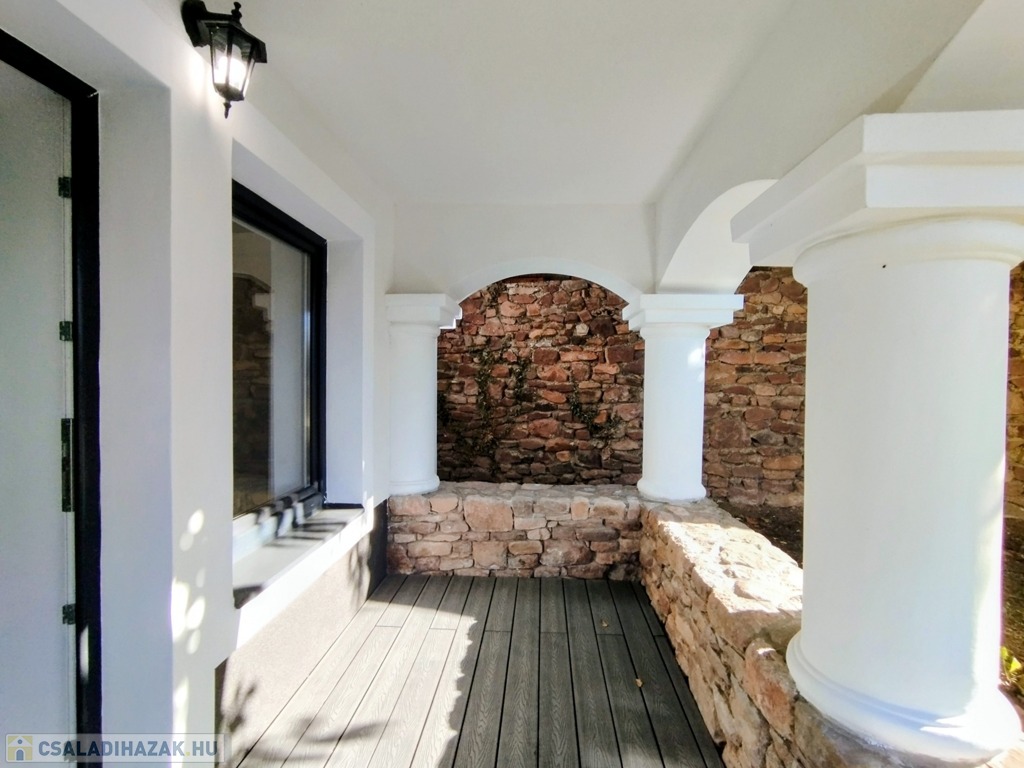 A ház Ny-i tájolású, a szinteket belső lépcső köti össze, az emeleti lépcsőfordulónál 12 m2-es erkélykapcsolattal rendelkezik, a földszinten hangulatos tornácos terasz, valamint egy 12 m2-es fedett terasz került kialakításra. Tájolásának köszönhetően a nyári estéket a naplemente látványa koronázza meg, a megunhatatlan szépségű táj panorámája pedig minden évszakban, minden napszakban más arcát mutatja.