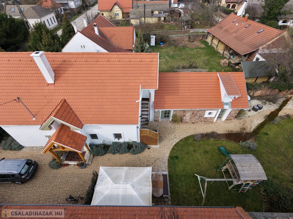 Eladó Kővágóörsön, a Káli-medencében, 5 km-re a Balaton parttól egy egész éves lakhatásra alkalmas 2021 és 2026 között teljeskörűen felújított családi ház.