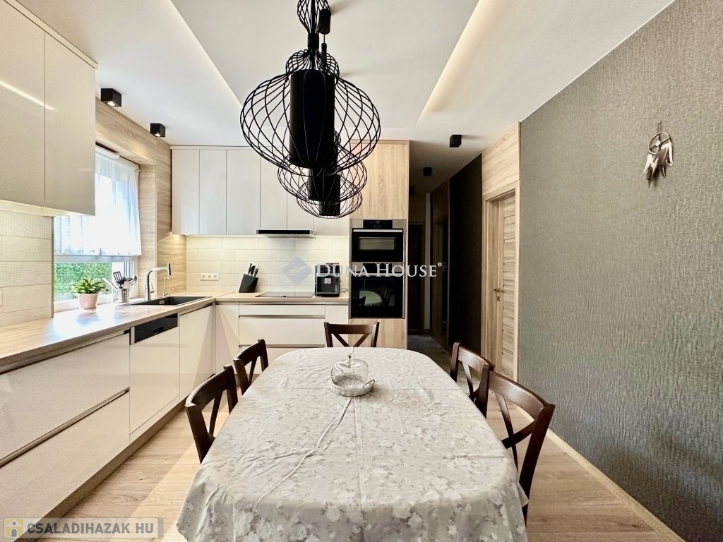 Eladó teljeskörűen felújított, prémium családi ház Kozármislenyben!Eladóvá vált Kozármisleny egyik csendes, családbarát utcájában egy kétszintes, nettó 168 m²-es családi ház, amely 1995-ben épült, és 2022-ben teljeskörű, magas színvonalú felújításon esett át így Önnek már csak költöznie kell!Az ingatlan főbb jellemzői: Nettó 168 m² lakótér 4 különnyíló hálószoba ideális családoknak 20 m²-es garázs 12 m²-es fedett terasz 660 m²-es rendezett telekModern, energiatakarékos megoldások: 3 rétegű műanyag nyílászárók, redőnnyel és szúnyoghálóval 12 kW-os napelemrendszer (éves szaldó elszámolás) 3 fázis Fűtés: kondenzációs gázkazán és hűtő-fűtő klímaberendezésPrémium kivitelezés és extra kényelmi funkciók: A teljes felújítás során magas minőségű anyagok és korszerű gépészeti megoldások kerültek beépítésre Kamerarendszer biztosítja az otthon védelmét Automata öntözőrendszer a kert gondozásához Igény esetén a teljes bútorzat is megvásárolható, így az ingatlan akár azonnal költözhető, berendezett otthonként is elérhetőEz a ház tökéletes választás mindazoknak, akik igényes, alacsony fenntartású, jól felszerelt otthont keresnek Pécs közvetlen közelében.További információért vagy időpont-egyeztetésért keressen bizalommal!