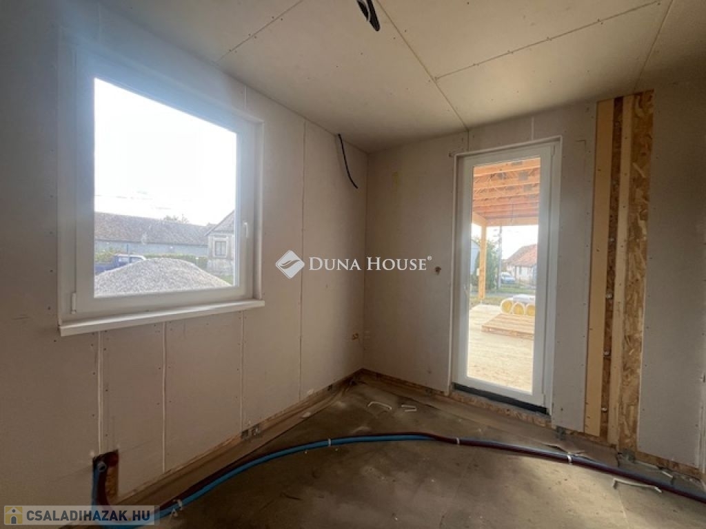 Eladó új építésű családi ház Kozármislenyben! Kozármislenyben csendes és nyugodt környezetben eladó egy 89 m²-es, modern, új építésű családi ház, amely minden igényt kielégít!Az ingatlan praktikus elrendezésének köszönhetően három szoba, konyha-étkező, nappali, fürdőszoba és külön WC áll a lakók rendelkezésére.A tágas 18,4 m²-es terasz tökéletes helyszín a reggeli kávéhoz vagy a nyári baráti összejövetelekhez. A házhoz tartozó 966 m²-es telek pedig rengeteg lehetőséget kínál: kerti sütögetés, gyermekjátszótér, medence vagy akár egy kis konyhakert is kényelmesen elfér rajta. Kerítéssel ellátva a terület, zúzottköves autó behajtóval és egy fedett gépkocsi beállóval.Ha egy kényelmes, modern otthonra vágysz nagy telekkel és nyugodt környezetben, ez a ház tökéletes választás lehet számodra!Várható átadás 2025 10 30, könnyűszerkezetes épület.Az árban szerkezetkész állapot van, melyben a gépészet benne foglaltatik,a festés és burkolás,fürdő és konyha kiválasztása már új tulajdonosára vár, természetesen a kivitelező megegyezés szerint segítséget nyújt.Hívj és megnézzük együtt!