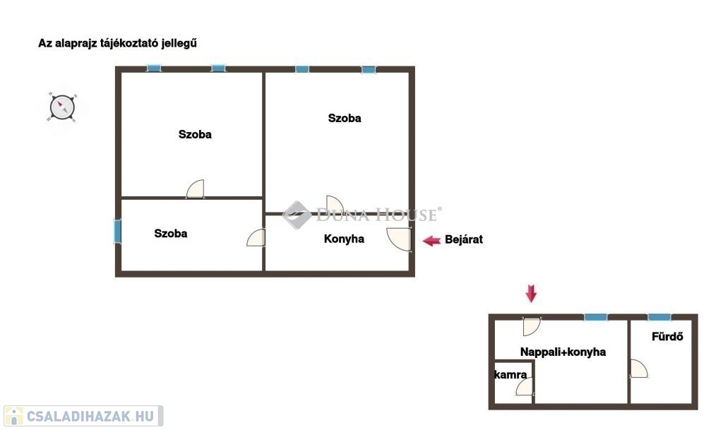 Eladó családi ház Kübekházán melléképülettel!Kübekháza csendes utcájában eladó egy felújítandó, vegyes falazatú családi ház, valamint egy különálló tégla melléképület, amely számos lehetőséget rejt magában.Főépület jellemzői:3 szobaKonyhaVegyes falazatA tető egy része pár éve felújításra kerültTégla melléképület:NappaliKonyhaFürdőszobaKamraKözművek:Víz, villany, csatorna bekötveGáz az utcában elérhetőAz ingatlan állapota felújítást igényel, de kiváló alapot biztosít egy kényelmes családi otthon kialakításához. A melléképület önálló funkciója akár vendégházként vagy külön lakrészként is hasznosítható.Amennyiben felkeltette érdeklődését, keressen bizalommal, és tekintse meg személyesen!