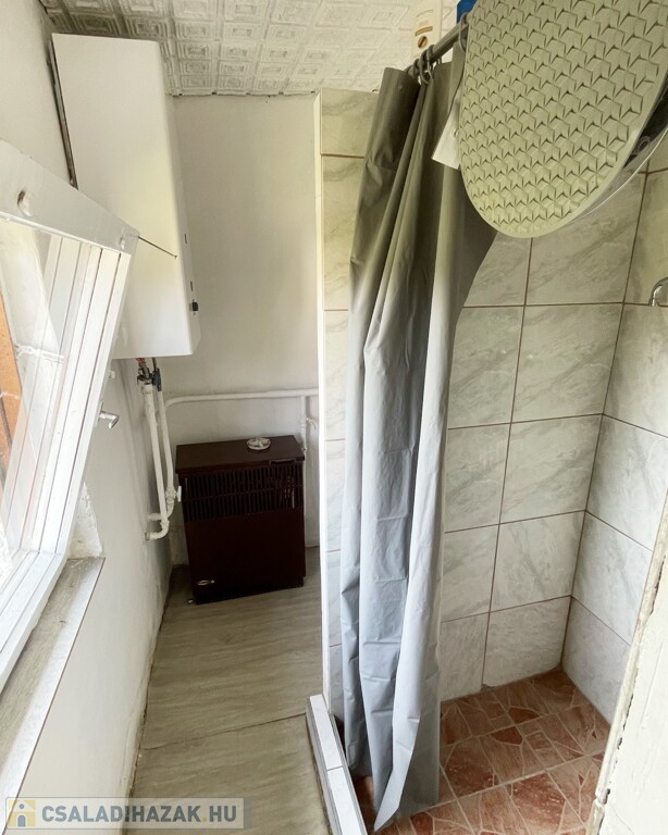 A telek 1607 m2, az úttól távolabb lévő kisméretű tégla alappal rendelkező vert falú lakóház 100 m2 nagyságú. Tetőszerkezete jó állapotú, betoncserép héjalással fedett. A fűtést gázkonvektorok, a meleg víz ellátást átfolyós gázbojler adja.