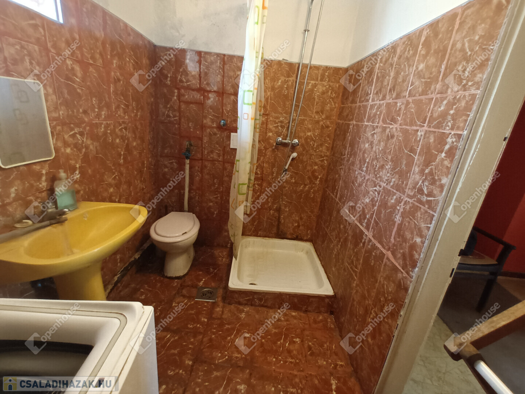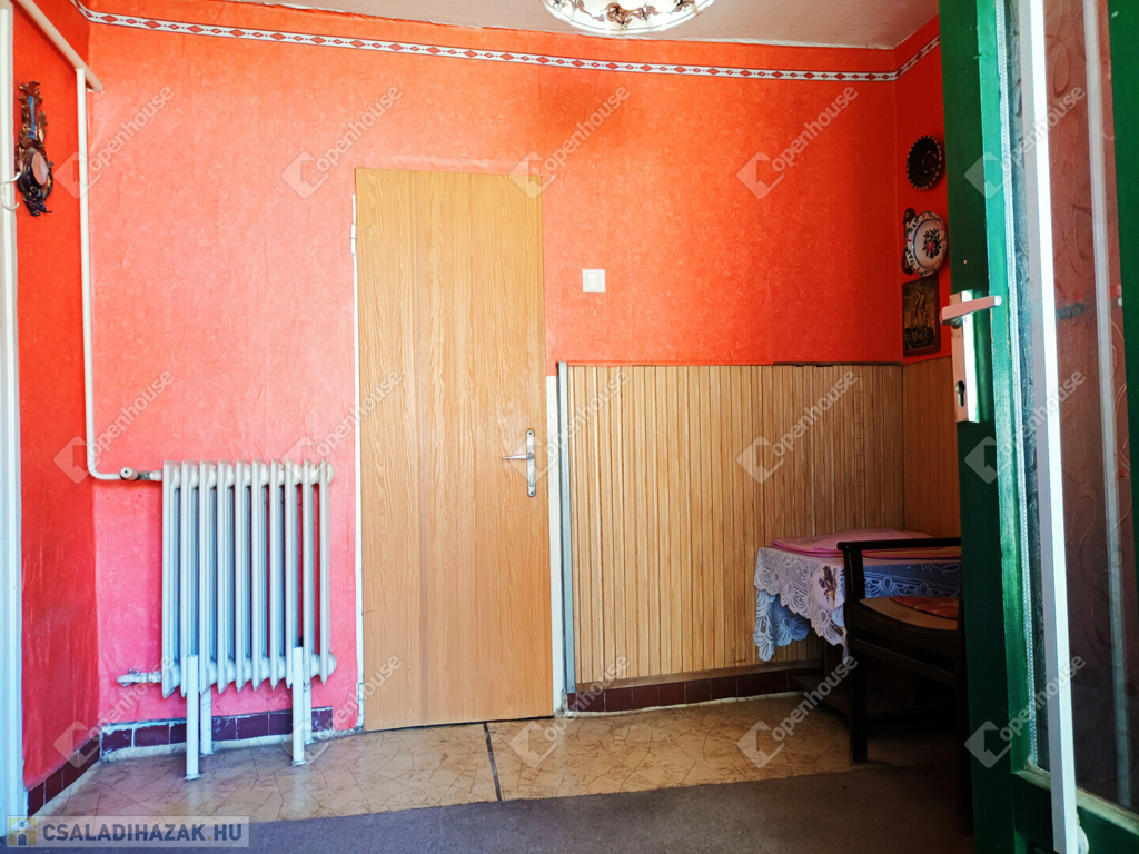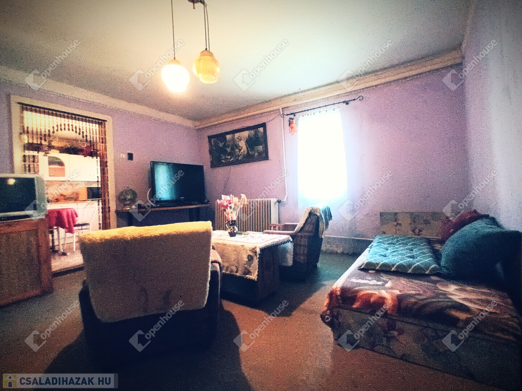 A főépület 90m²-es, vegyes falazatú, jelenlegi elosztása szerint három szoba, két konyha és egy fürdőszoba található benne. Két bejárattal rendelkezik, így több generációs családoknak vagy összeköltözőknek is ideális választás lehet. Az ingatlanban két külön villanyórát alakítottak ki. A fűtést fatüzelésű központi fűtés biztosítja. A tető 2000-ben felújításra került, jelenleg is jó állapotú.