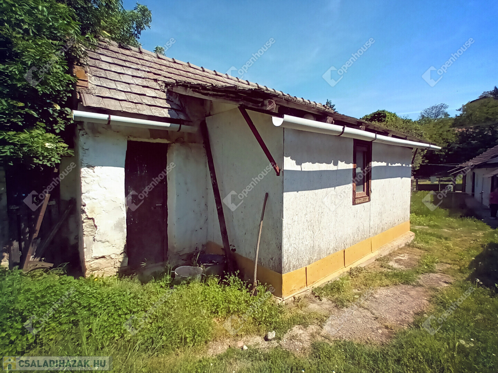 A telken található egy kb. 35 m²-es, téglából épült kisebb ház, amely három helyiségből áll és szintén rendelkezik villanyellátással – akár külön lakrész vagy műhely céljára is alkalmas lehet.