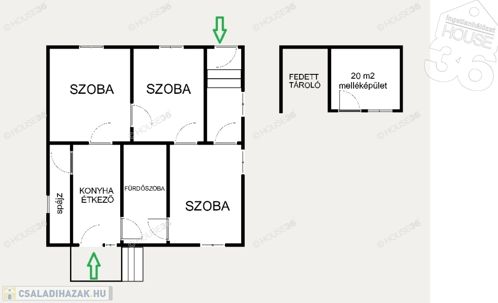 -melléképület: 20 m2