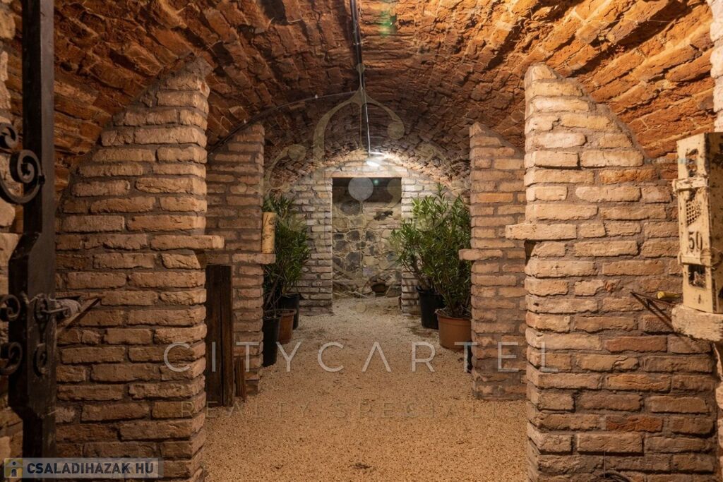 A kastély egyik legkülönlegesebb hangulati eleme a téglából épített borospince, amely kovácsoltvas ajtajával valódi kuriózum, és tökéletesen illeszkedik az épület történelmi miliőjéhez. A birtokon ezen felül egy különálló, pincés kerti ház is található, amely ideális tárolóként szolgálhat a kert- és parkfenntartáshoz szükséges gépek, eszközök és felszerelések számára.