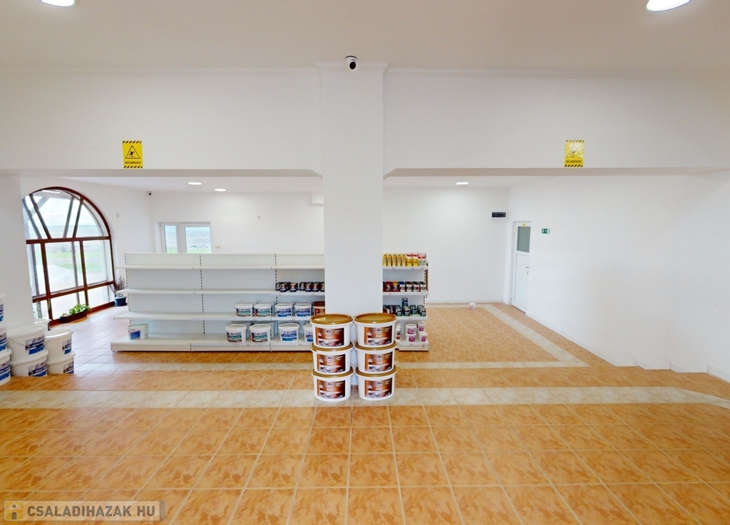 A földszinten találhatunk egy hatalmas nagy teret. Gyönyörű szép burkolattal, fallal, spotlámpákkal. Gyönyörű kilátással a környezetre. Képzeljük el, hogy akár egy étteremként, akár egy bemutató teremként – attól függően, hogy mire kívánjuk használni az ingatlant – kiválóan funkcionálhat a mellette levő külön teremmel, recepcióval, és a hozzá tartozó tárolókkal együtt.