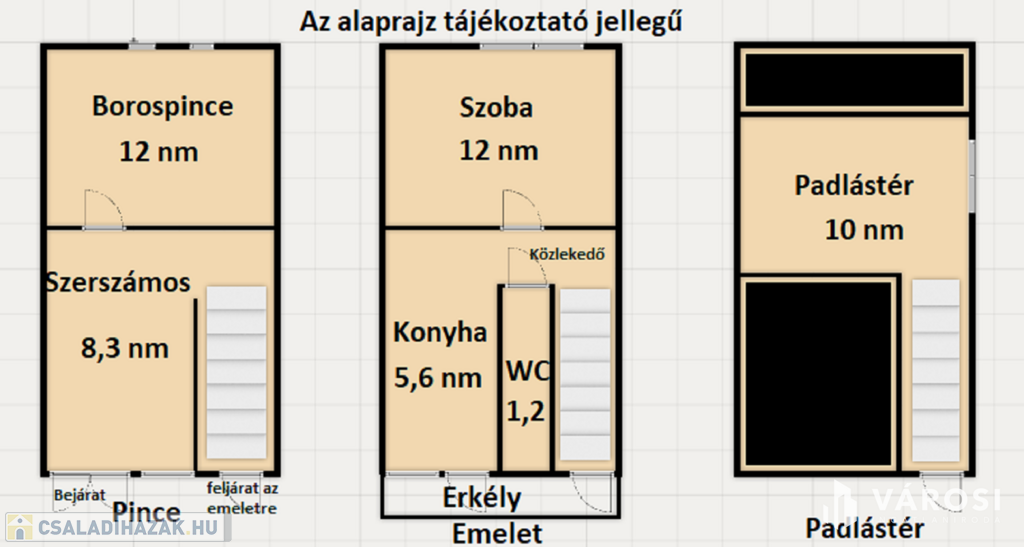 Az épületek 3 szintre bonthatóak. Az alsó szint a pince szint, egyik épületben itt található a konyha és kamra rész, a másik ingatlannál pedig szerszám tárolóként és borospinceként funkcionál. A középső szint (emeleti rész) az egyik épületnél kettő szoba + zuhanyzó, míg a másikba egy szoba, egy konyha + WC található. A tetőtér az egyiknél be van építve szobának, a másiknál jelenleg raktár, de egyszerűen itt is kialakítható egy szoba.