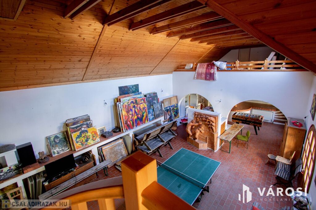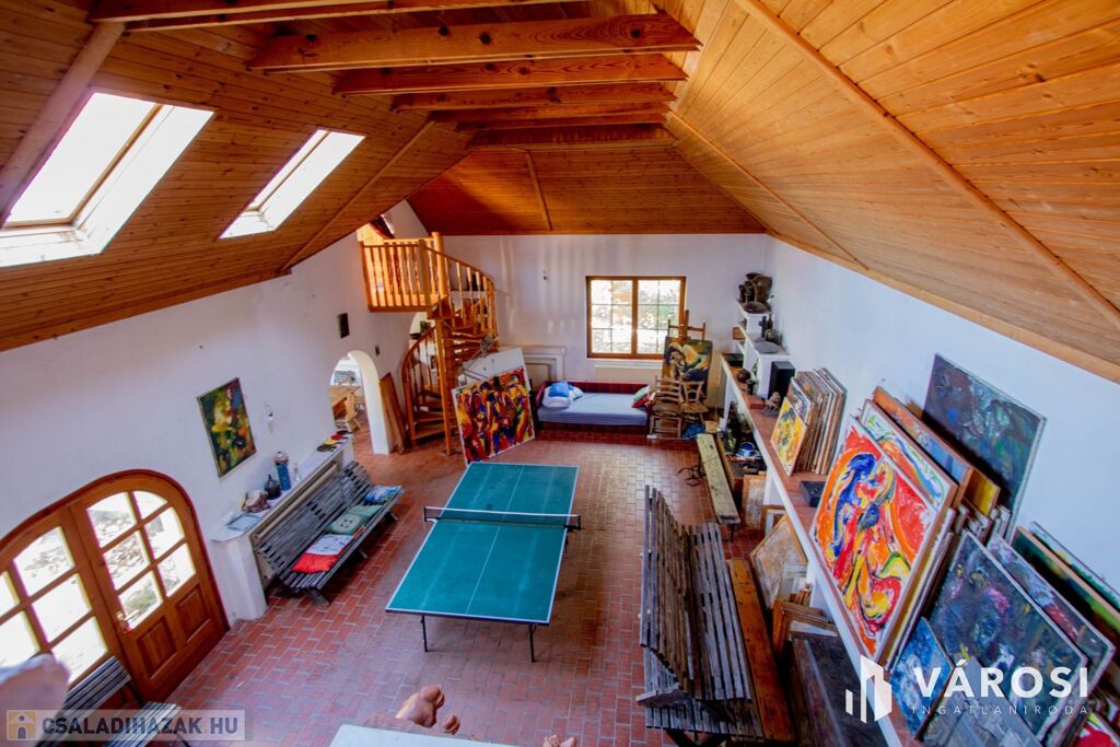 Az ingatlan remek választás olyan embernek, akinek szüksége van alkotói térre vagy a munkája miatt hasznosítani tudja a közel 120 nm nagyságú művészi részét a háznak, de akár befektetési célra is kiváló választás. A ház lakrésze 140 nm hasznos alapterületű, itt akár 4 szoba, 1 nappali, 1 előtér + étkező, 1 konyha és 1 fürdő+ WC található, jelenleg ez is egyedi stílusba van berendezve, de az elosztása adott, abból könnyedén kialakítható egy nagyobb család számára praktikus lakrész.