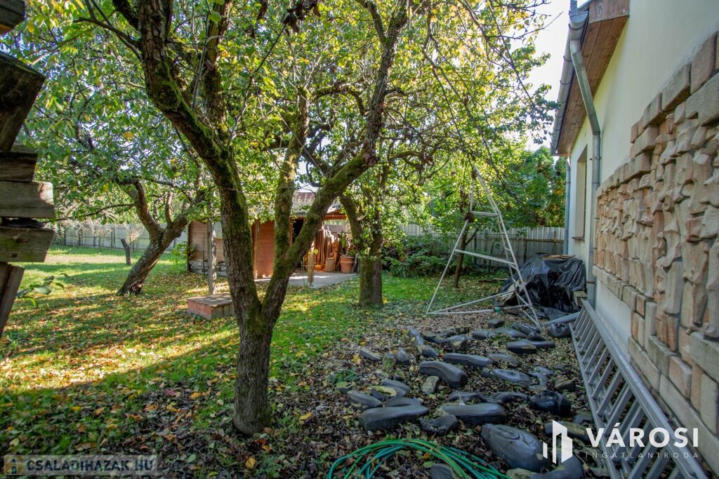 Az udvara parkosított, egy kerti kis tó is található benne, ami egy kis törődésre vár, de nagyon hangulatos hatást kelt így is. Tárolásra egy hangulatos kis faház lett felépítve.