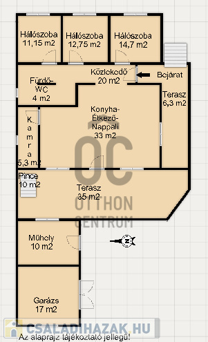 - a földszintes épület helyiségei: 3 tágas hálószoba, egy légtérben amerikai konyha-étkező-nappali, fürdőszoba, külön WC, közlekedő, terasz, kamra kapott helyet