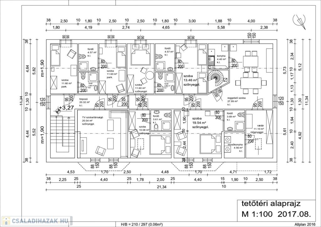 - EMELET bruttó 193 m2: 6 db szoba saját, zuhanyzós fürdővel, 1 társalgó, 1 étkező. konyha, mosókonyha, dolgozószoba.