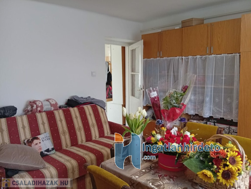 Elhelyezkedése: Belterület Tájolása: észak-nyugati tájolású Állapota: Használt - felújított Komfort besorolása: összkomfortos Építési éve: 1964 Alapterülete: 70 m2 Telekterülete: 1 499 m2 Szobák száma: 2szoba Felújított: Felújított Felújítás éve: 2024 Felújítás során elvégzett munkák: Festés, Villanyrendszer csere, Csempe csere, Járólap csere, Parketta csere, Álmennyezet beépítése, Fűrdőszobai szaniterek cseréje, Belső átépítés, Hőszigetelt nyílászárók beépítése Közművek: Gáz, Víz, Villany, Csatorna Gázellátás: Vezetékes Vízellátás: Vezetékes víz Melegvíz-ellátás: Villanybojler Áramellátás: 230V Fűtés módja: Gáz Fűtés típusa: Konvektoros Homlokzat állapot: Jó Építési mód: Tégla, Szilikát Tető formája: Magas Tető anyaga: Cserép Parkolási lehetőség: Utcán, Telken Kilátás: Utcafronti kilátás, Udvari kilátás, Egyéb panorámás Napelem: Nincs Jellemzői: Alacsony rezsi, Csendes környék, Jó közlekedés, Redőny, Étkező, Autóbeálló, Kert, Kerítés, Saját fúrt kút, Zöldterület, Jó közbiztonság Energetikai besorolás: Nincs adat Egyéb jellemzők: Melléképület, Pince Tv, Internet: Kábeltévé, Internet, Vezetékes telefon Közelben: Iskola, Óvoda, Vasútállomás, Autóbuszállomás, Helyi autóbuszállomás, Orvosi rendelő, Bolt, Gyógyszertár, Postahivatal, Vendéglátó egység, Autópálya Rezsi költség(Ft): 35000 Terhelések: Tehermentes ingatlan