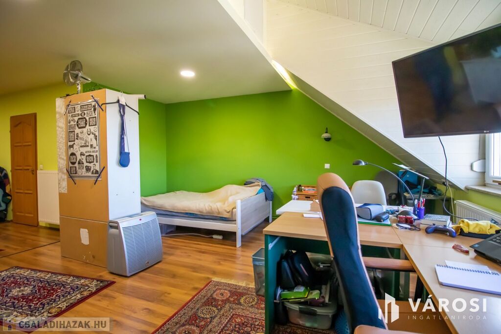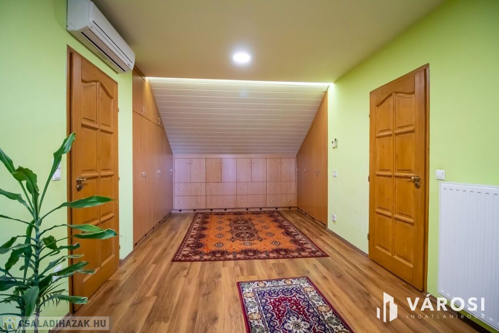 • Extrák a kényelemért: Egyedileg gyártott, gépesített konyhabútor, motoros garázsajtó és 3 hűtő-fűtő klíma emeli az ingatlan komfortját.