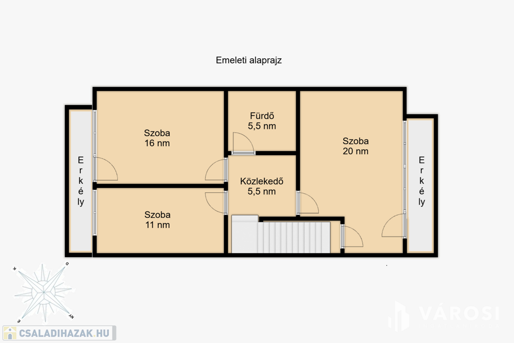 • Tágas terek: Nappali + 4 különnyíló szoba biztosítja a család minden tagjának a magánszférát.