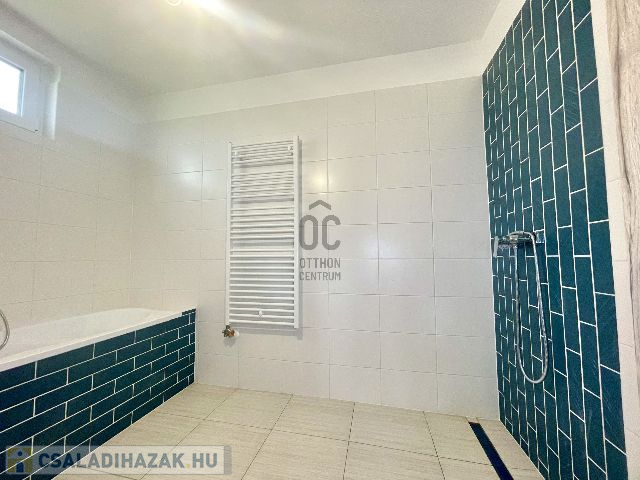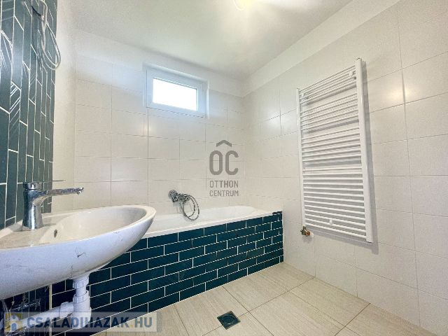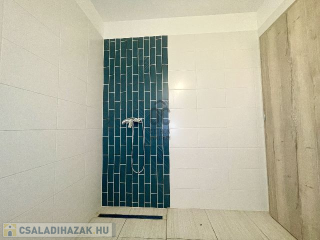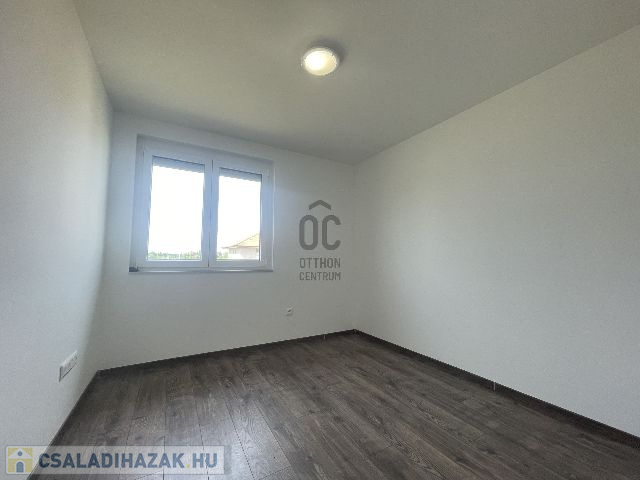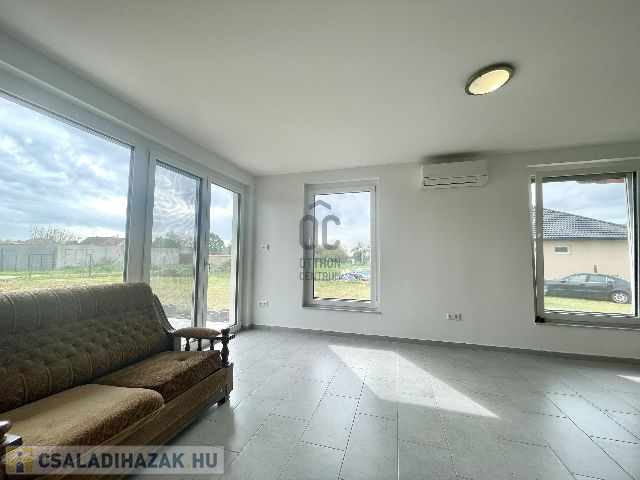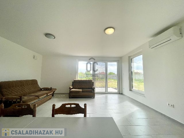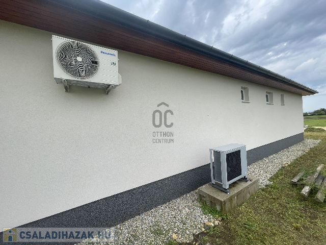 Az egy szintes családi ház 2024-ben épült, 960 m2-es telken elhelyezkedő, bruttó 105 m2 alapterületű, amely amerikai konyhás nappali-étkező, szülői hálószoba, plusz két hálószoba, fürdőszoba, külön mellékhelyiség, háztartási helyiség kialakítású. A 96 m2 lakóterülettel rendelkező ház 3 rétegű hőszigetelt, műanyag Kömmerling nyílászárókkal rendelkezik, amelyek elektromos műanyag redőnyökkel és rovarhálóval felszereltek. A padló fűtésről és a hűtésről korszerű Svéd hőszivattyú gondoskodik, ezen kívül a nappaliban hűtő-fűtő klíma is beszerelésre került. A villamos energia felhasználás költséghatékonyabbá és környezetkímélőbbé tételének érdekében 6, 0 kWp teljesítményű napelem rendszer került telepítésre, az energia hatékonyság érdekében pedig központi hőcserélős szellőztető rendszer kerül kiépítésre. Az amerikai konyhás nappali-étkezőhöz egy 15, 5 m2-es terasz is csatlakozik.