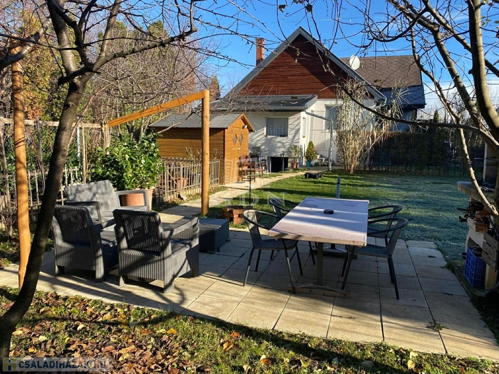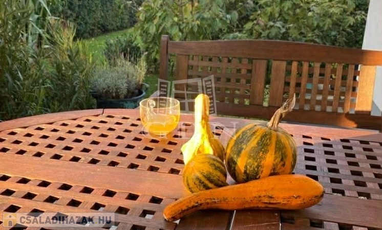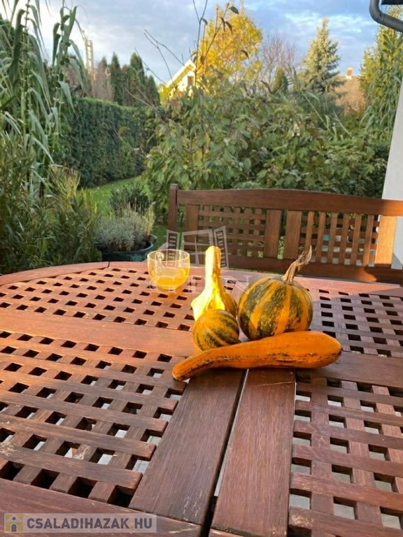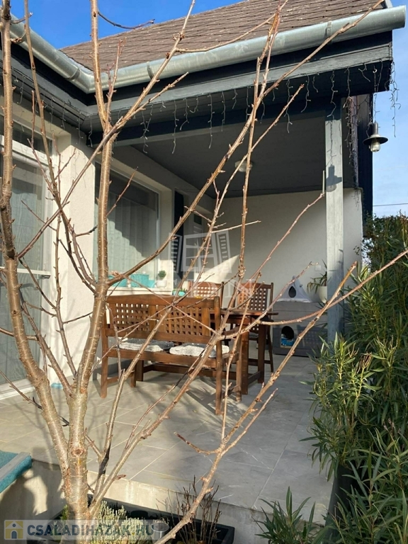 12 m2-es fedett teraszról csodálhatjuk a gondozott udvart, melyen kerti tároló, grillező és garázs található.