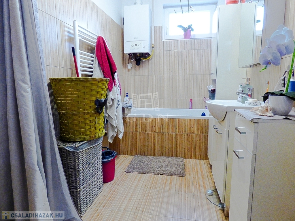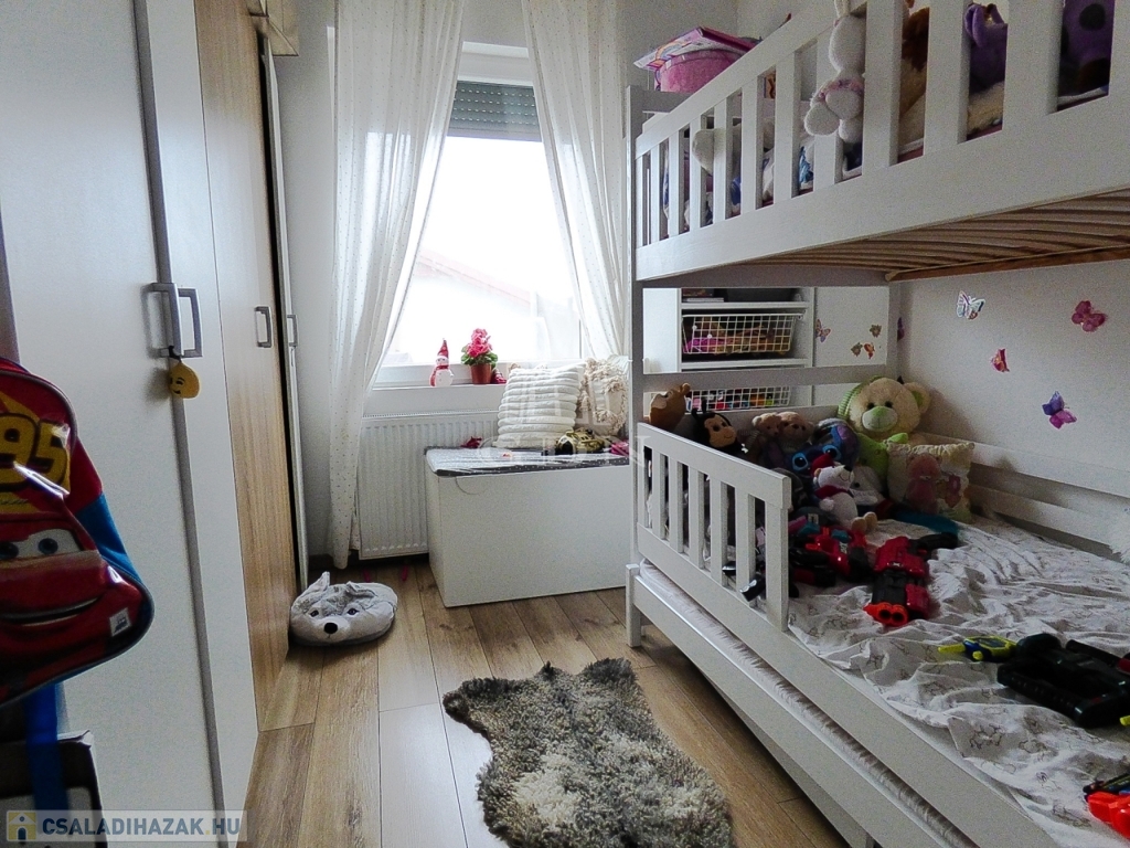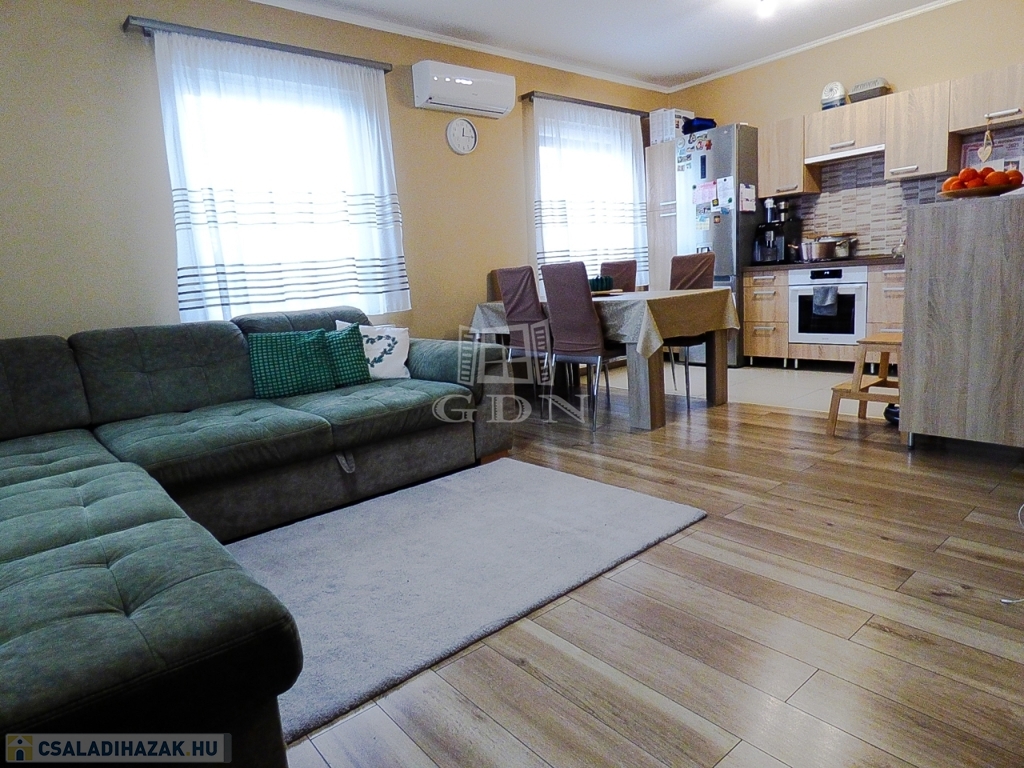 Műanyag thermo nyílászárókkal, redőnnyel, rovarhálóval, kondenzációs gáz cirkóval, klímával felszerelt.