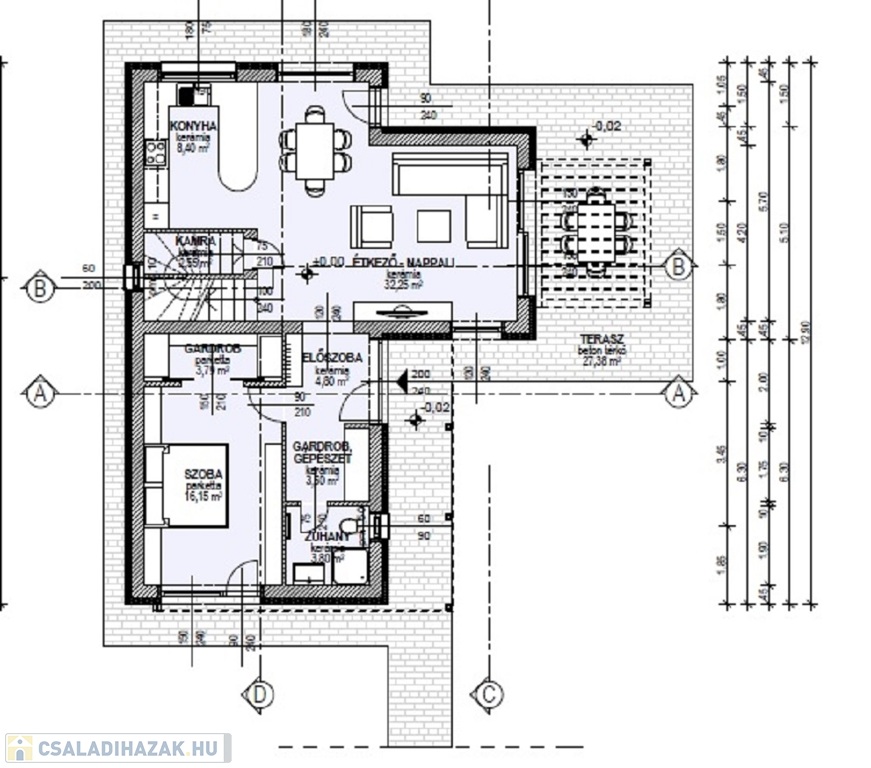 -Hőszigetelése:- Homlokzati falakon 15 cm Austrotherm AT-H 80, - Lábazaton 15 cm Austrotherm