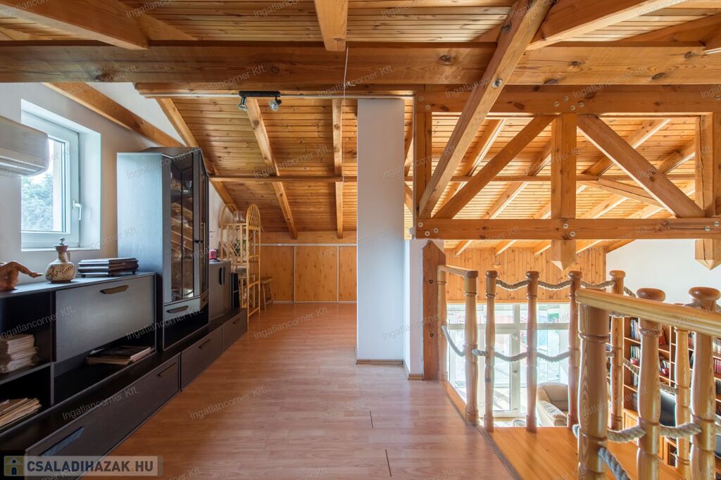 Az udvaron a medence mellett tovább haladva érkezünk a galériás főépületbe. A terméskővel kirakott homlokzatú főépületben fürdő, külön Wc, háló, nappali, étkező, konyha és a nappaliból elérhető tágas galéria kapott helyet. Az épületen átsétálva, a telek Duna parti része gyönyörűen parkosított, szalonnasütővel és díszburkolattal tarkított valamint vakond-hálóval ellátott. A kertben lett kialakítva a 45 m2-es borpince lejárója is, ami kivételes hangulatúvá teszi az egész kertet.