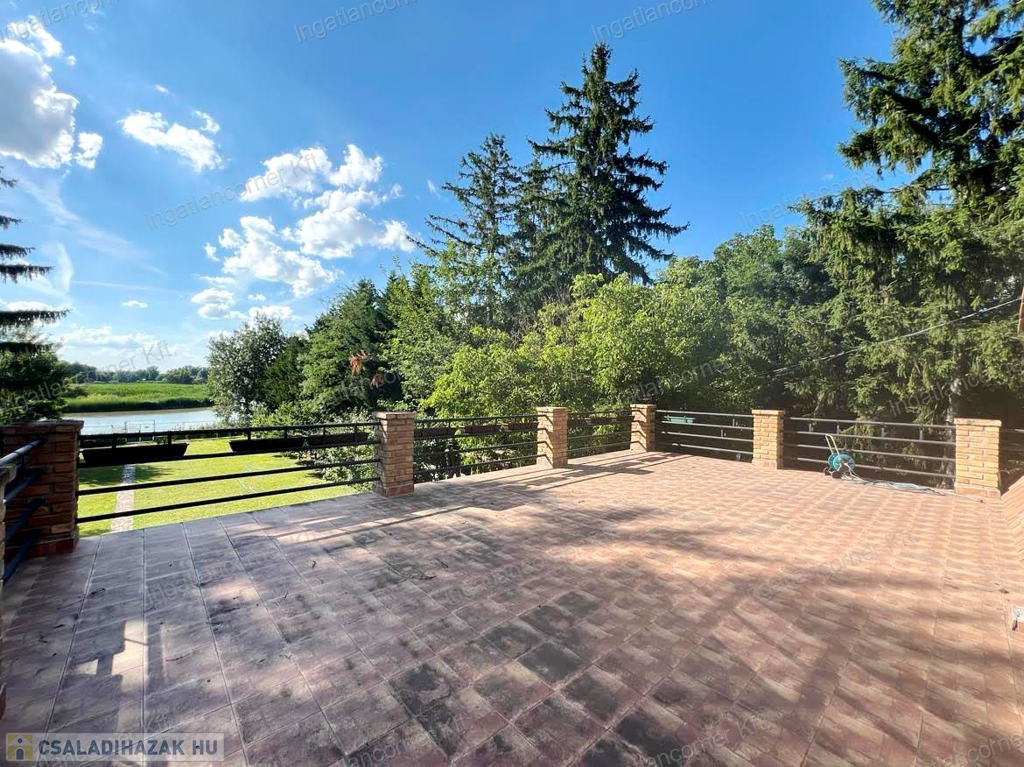 KÖZVETLEN VÍZPARTI 3111 m2 telekkel rendelkező, bruttó 257 m2-es, Mediterrán stílusban épült, NAPPALI + 5 SZOBÁS, két nagyméretű terasszal rendelkező (60m2+28m2), DUNAI PANORÁMÁS családi ház ELADÓ!