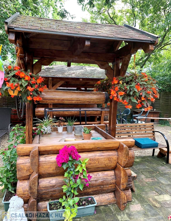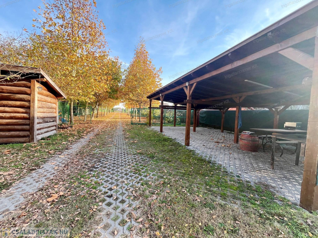 - KERT: A kertben található egy 16 m2-es fából készült tároló. A locsolás fúrt kútról történik melyhez ki lett építve 8 helyen való csatlakozási lehetőség a slagos locsoláshoz. A kertben gyümölcsfákat is találunk, mint pl.: körte, cseresznye, meggy, sárgabarack, őszibarack, szilva stb.