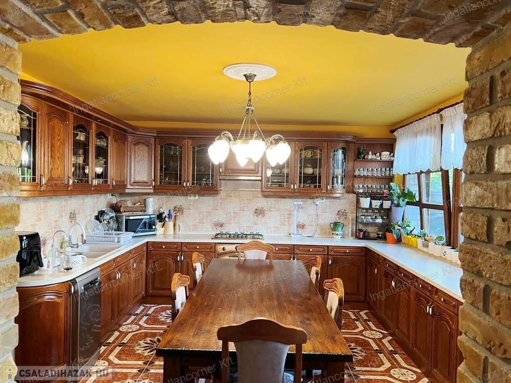 Az épületben CSERESZNYE és TÖLGYFÁBÓL készült BÚTOROKAT találunk. A tölgyfából készült, felsőkategóriás gépekkel felszerelt, gyönyörű beépített konyhabútor és a beépített bútorok az ár részét képezik. A több berendezés megvásárlása további megegyezés kérdése!