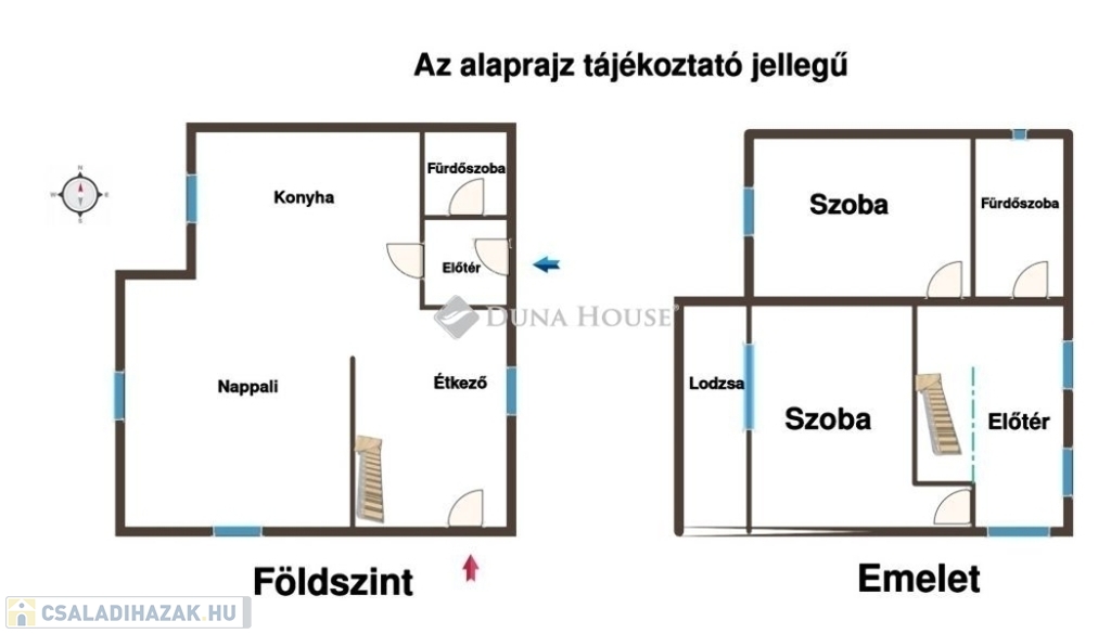 2 külön nyíló szoba az emeleten