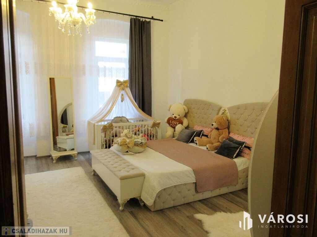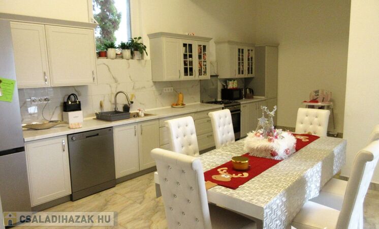 Makón kínálom eladásra ezt a gyönyörűen felújított polgári házat. 2022-ben a belseje teljesen fel lett újítva: a villanyvezeték újrahúzva, fűtésrendszer gáz-cirkó, melyhez minden helységben padlófűtés került kialakításra. Újak a burkolatok is, a tető is szigetelve van. A helységek hatalmasak: a nappali 60 (!!!) négyzetméter, a két egyforma nagyságú hálószoba egyenként 29 nm. A konyha/étkező 28 nm. Ezen kívül egy 5,6 nm-es zuhanyzó és egy 2,7 nm-es mosókonyha is a ház része. A nyári pihenést az étkezőből nyíló 28 nm-es terasz vagy a nappaliban a ház klímaberendezése biztosítja. A zuhanyzó is teljes felújítást kapott, egy gyönyörű vízsugár masszázs zuhanykabin lett beépítve. Minden a lehető legnagyobb igénnyel lett kialakítva.