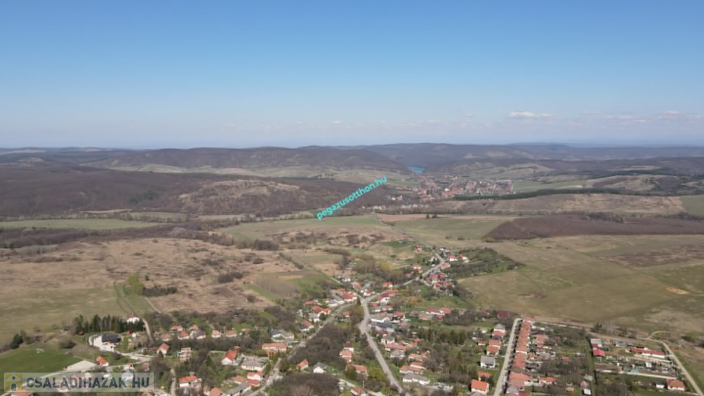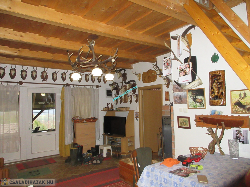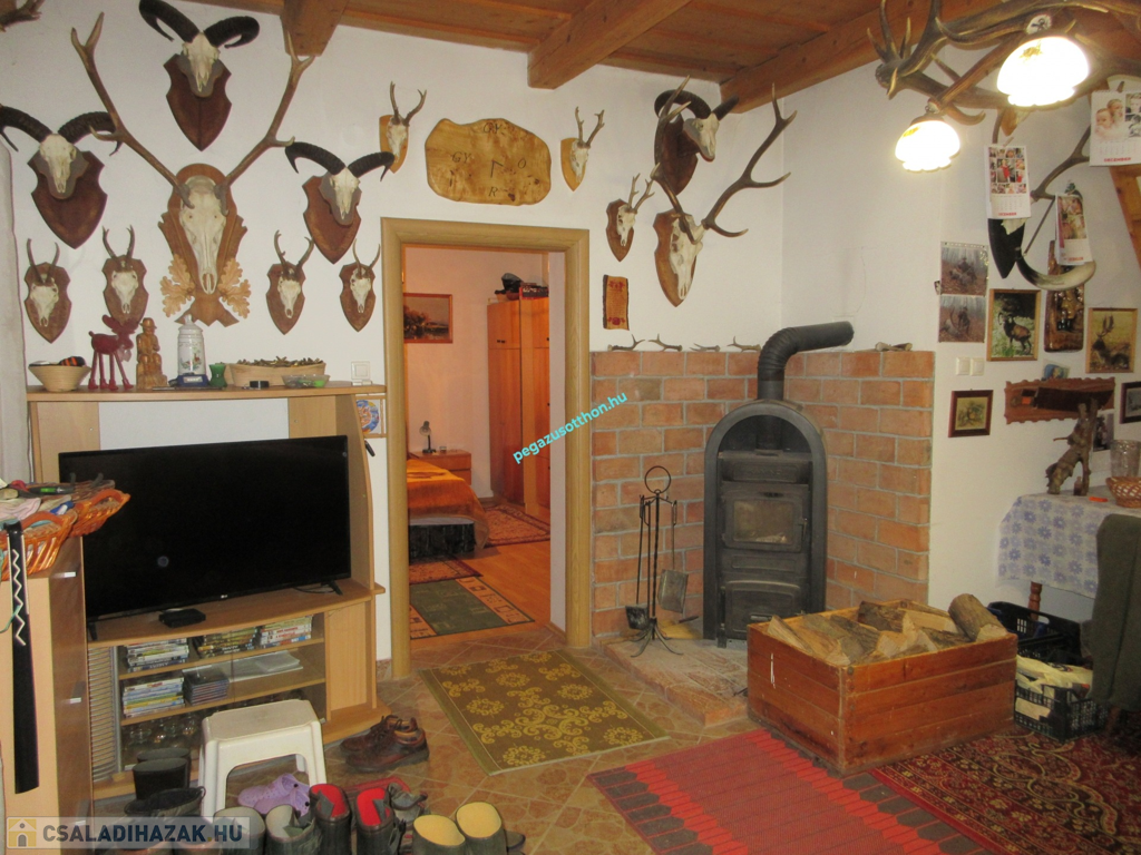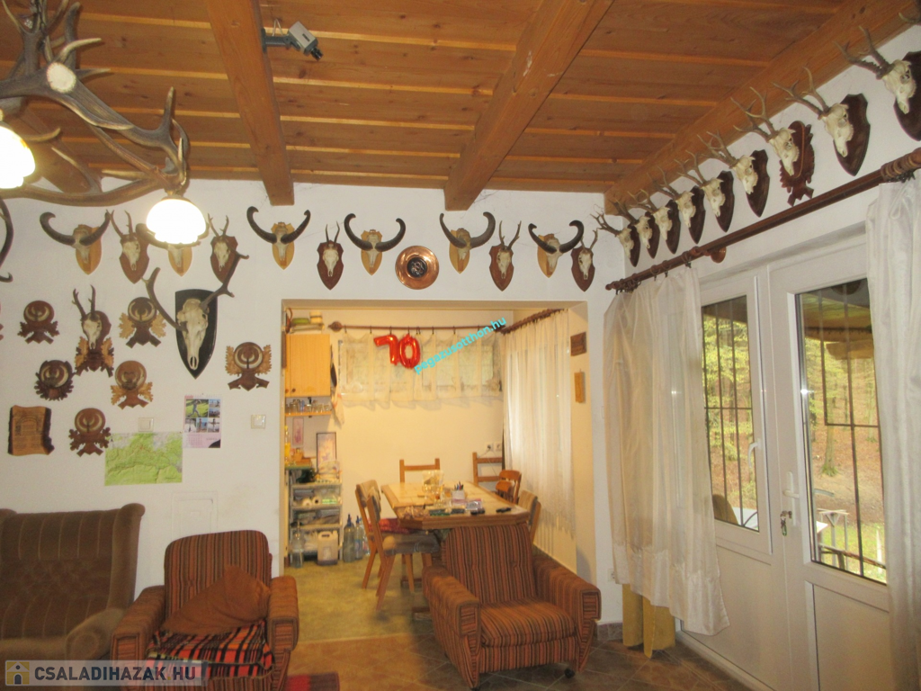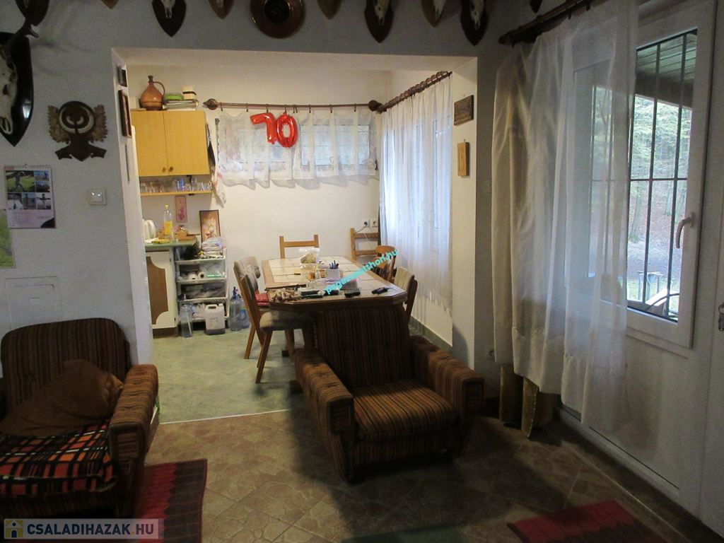 Kiegészítő épületek: A telken található egy 35 m²-es faház, ami kerti kamraként funkcionál, valamint egy fedett terasz/autóbeálló és egy szalonnasütő is. Pince és tárolók: Az épület mögött a hegyoldalba ásott pince található, nagy, fedett és zárt egyéb tároló helyiségekkel. Közművek: Vezetékes víz és villany bevezetve, szennyvízelvezetés derítővel megoldott, valamint fúrt kút is található a telken. Természetközeli környezet: A terület teljesen körbekerített, több kapuval ellátott, és rengeteg fenyő- és gyümölcsfával rendelkezik.