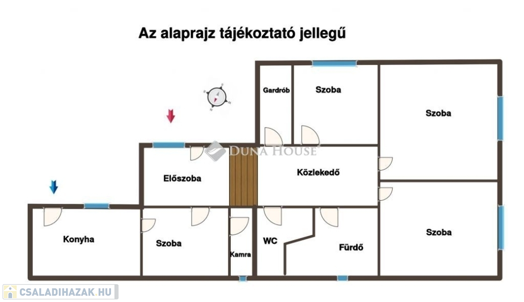 A házban 4 külön bejáratú szoba, valamint egy külön gardróbszoba biztosít kényelmes elrendezést.