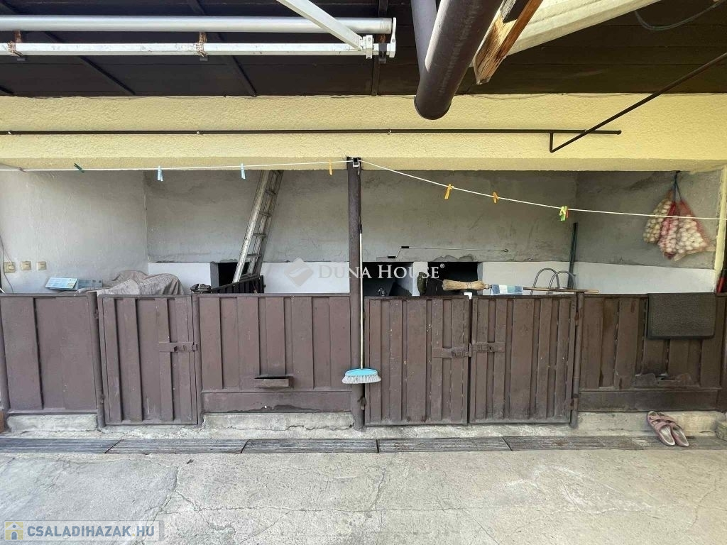 A tető cseréppel fedett, a házhoz pedig több melléképület, tároló, valamint egy kb. 20 nm-es garázs is tartozik.