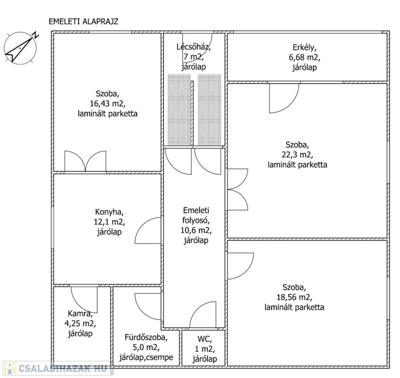 A padlás tágas, magas, a lépcsőházból lépcsőn megközelíthető, ezért további lakótér bővítési lehetőséget is kínál.