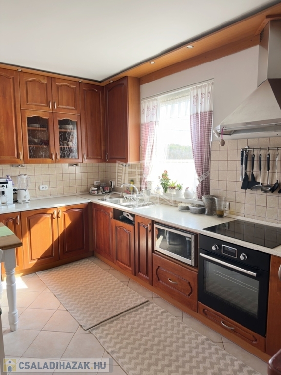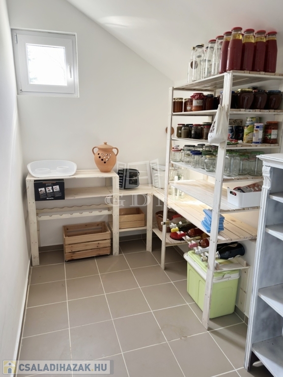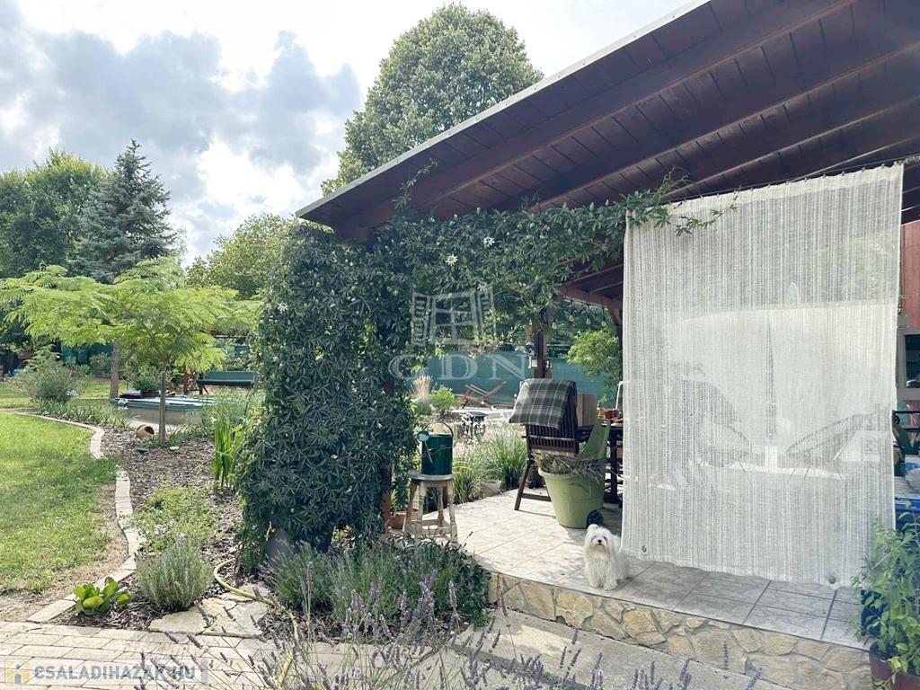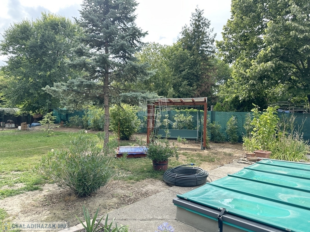 Az épület a 90-es években beton alapra, tégla falazattal épült, külső szigeteléssel ellátott, betoncserép tetőzettel rendelkezik (110 nm). A parkosított kertben (885 nm) medence, a kert végében kutya kennel, tárolók és baromfi tartásra kialakított alkalmas udvarrész is található a málna, eper és veteményes kert mellett. Az előkertben egy fedett autóbeálló valamint még egy gépkocsi beálló is található.