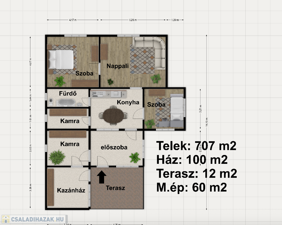 - Az 707 m2-es telken, a ház mellett található egy kb 60 m2-es több helyiségből álló tároló